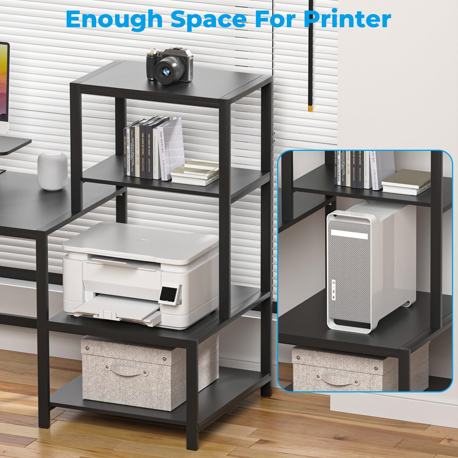 • Printer Space & Dual Hooks: The middle shelf is designed to fit larger printers, scanners, or other office equipment, keeping your workspace organized and efficient. Two side hooks for headphones or gaming gear