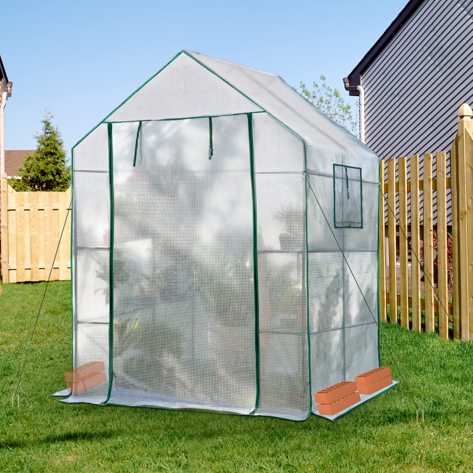 • Stable: High-strength connector link 16mm diameter steel pipe with ground nails and rope help stabilize the portable greenhouses for outdoors and prevent it from being blown down by strong winds.