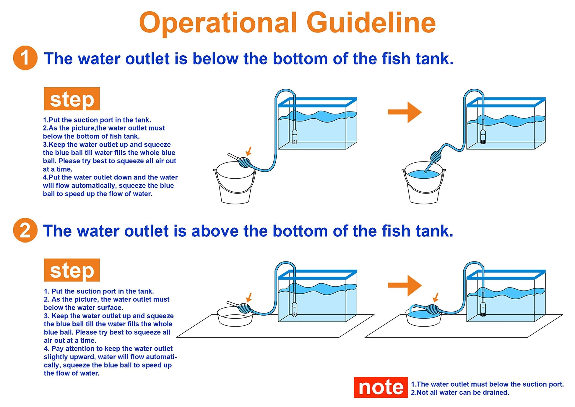 • High-quality Material: This aquarium cleaning kit includes two essential tools: the 5-in-1 Aquarium Fish Tank Clean Algae Scrapers and the Fish Tank Gravel Cleaner Siphon Vacuum. Both tools are made of high-quality materials to ensure durability and longevity.