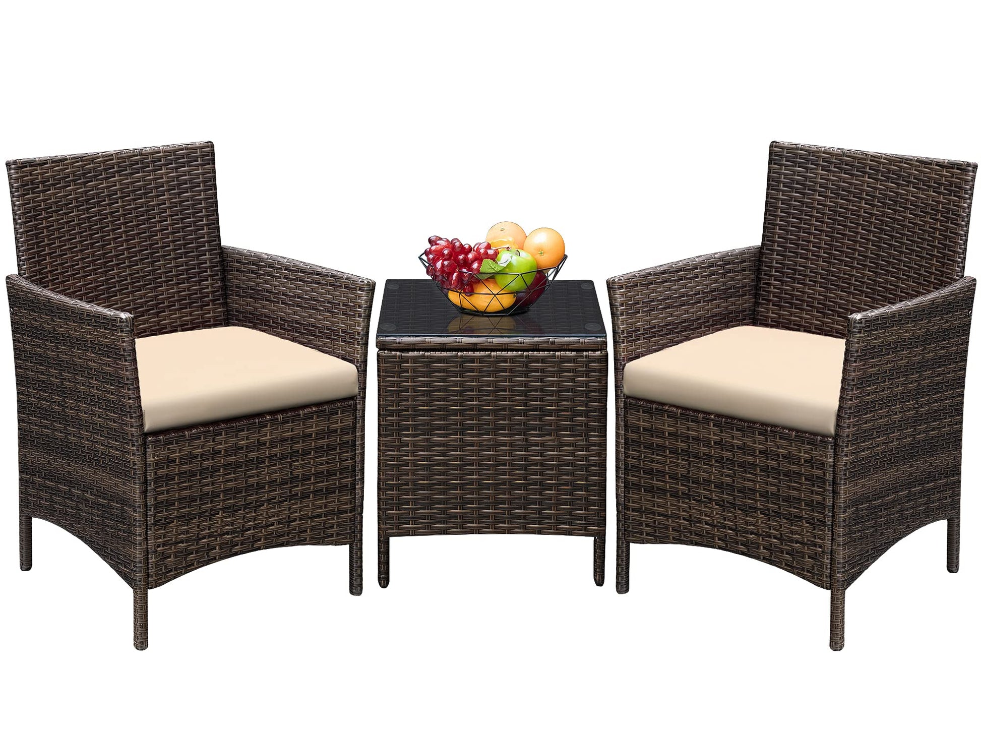 • Widely used: The item includes 2 single seats and a glass table, you can use it to have a chat with you family in garden or put it in porch. ALL in all, it is suitable for you to decorate the yard and not takes up a lot of space.