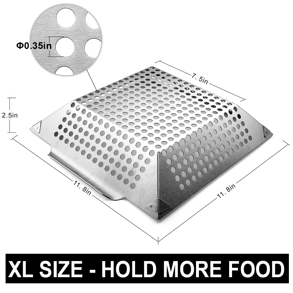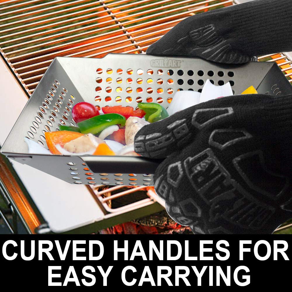 GRILLART Grill Basket Heavy Duty -Large Grill Baskets for Outdoor Grill Vegetables -Stainless Steel Veggie Grilling Basket/Pan - Lasting Grill Vegetable Basket BBQ Grill Accessories, Gifts for Dad Men