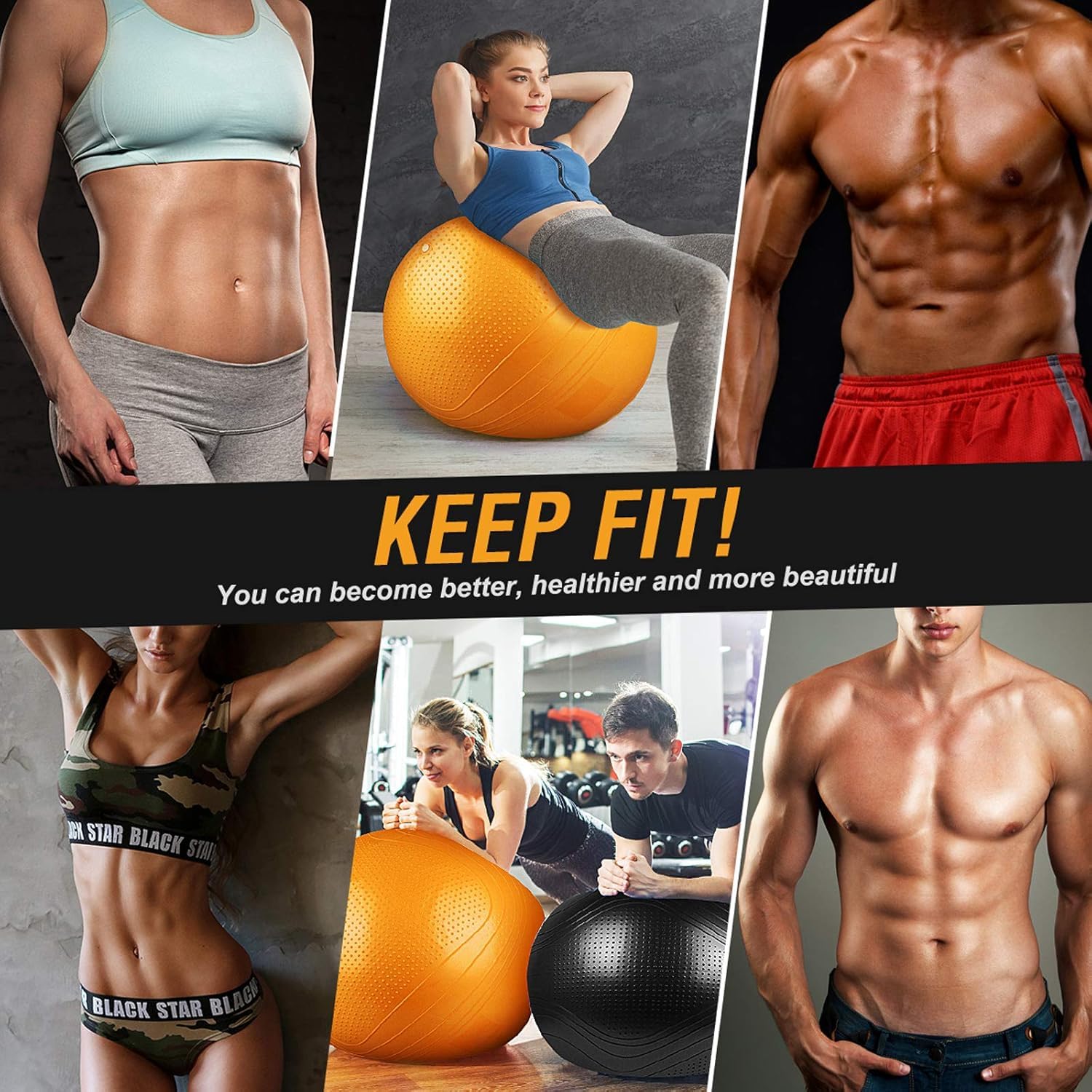 Gruper Yoga Ball, 55-75cm Extra Thick Exercise Ball for Workout Fitness Balance, Anti Burst Chair for Home and Office Desk,Includes Hand Pump & Workout Guide Access (Orange, 22 inch (55cm),M)