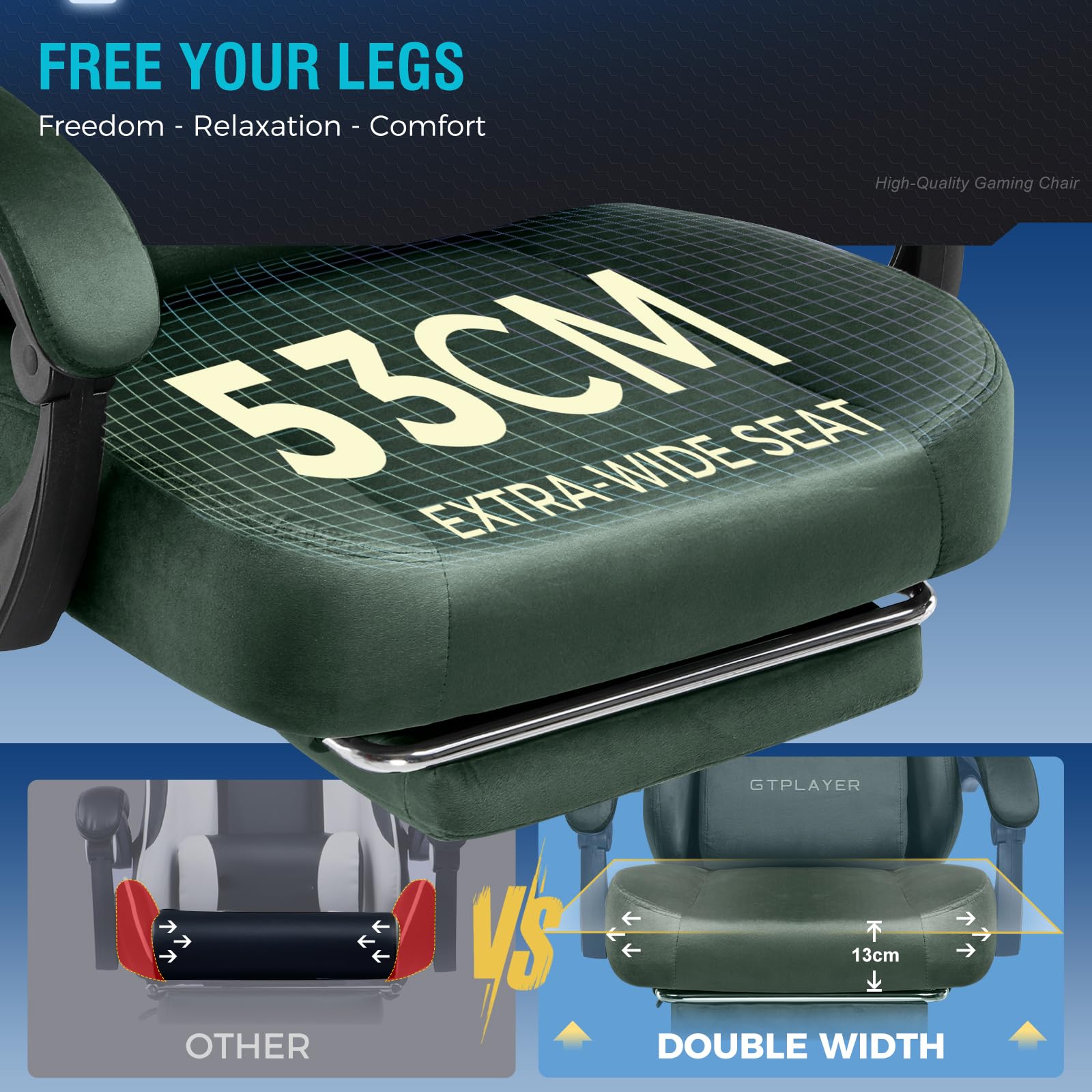 • Independent Integrated Spring Padding: GTPLAYER gaming chair is equipped with high-quality integrated spring padding that provides optimal comfort and support while gaming and working. This advanced seating technology provides dynamic support and adjusts to your position to ensure long-lasting comfort and reduce fatigue during long gaming sessions.