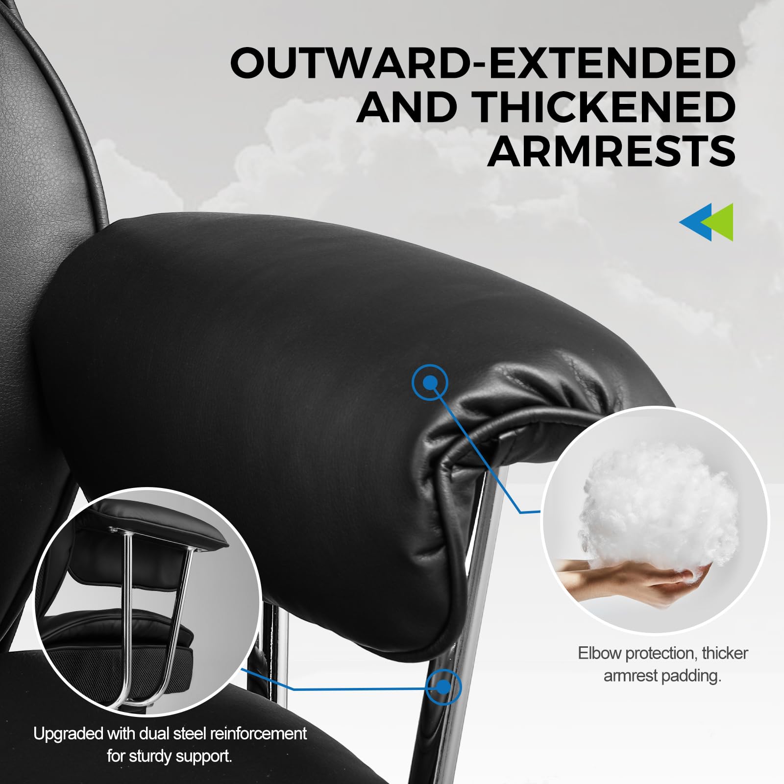 • 【Sofa-like Seat】 The executive chair features a pocket spring lumbar support for elasticity and heat dissipation during prolonged sitting. The widened seat, free of restricting side wings, along with an adjustable footrest, allows comfortable seating in any position. It's as casual and free as sitting on your own sofa