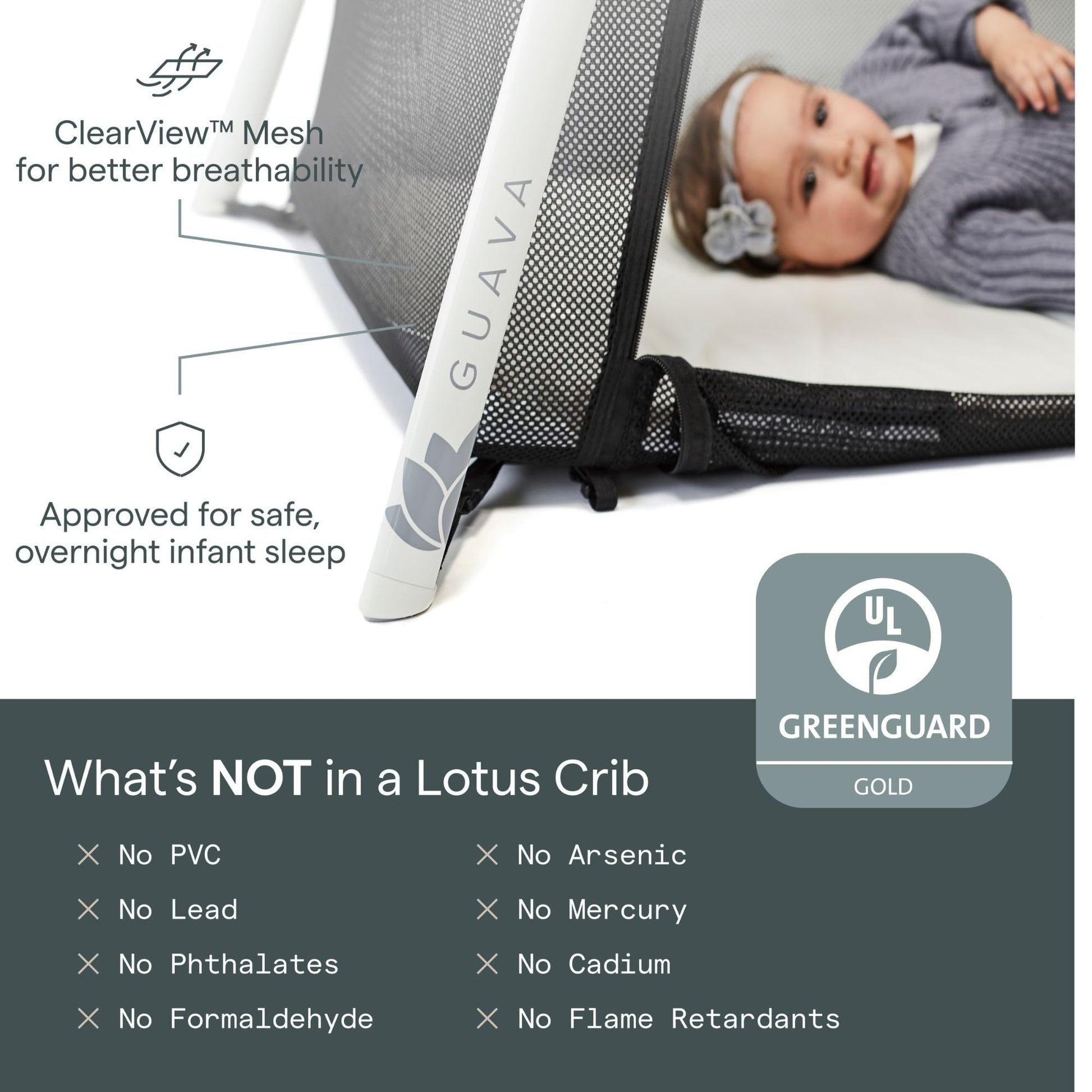• 【CERTIFIED SAFE & LOW-VOC】It’s surprising, but some baby products, including play yards, still contain harsh chemicals. That didn’t fly with our team, so we had the Lotus tested, and certified, GreenGuard Gold – one of the only portable play yards to do so. What does that mean? No PVC, lead, formaldehyde, mercury, arsenic, phthalates, or other dangerous chemicals. Whether resting or playing, the Lotus truly creates a safe and comfortable environment for your little one