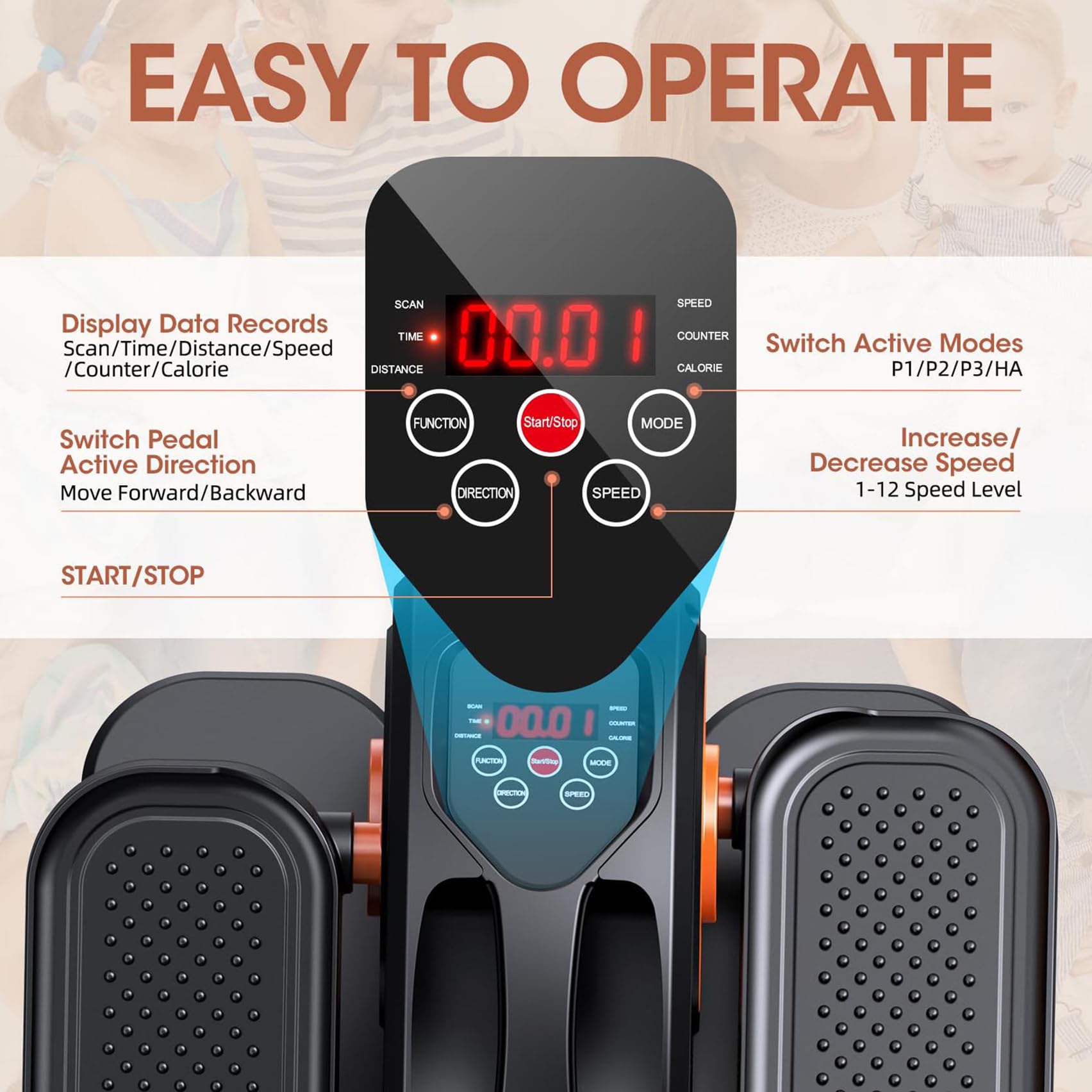 • 【2 IN 1 & Auto or Manual Modes】Unlike traditional exercise machines, GUGTTR under desk elliptical machine has Manual (12-level speed) & Auto (P1-P3) for your choice. Pedals can forward or backward to target different muscles