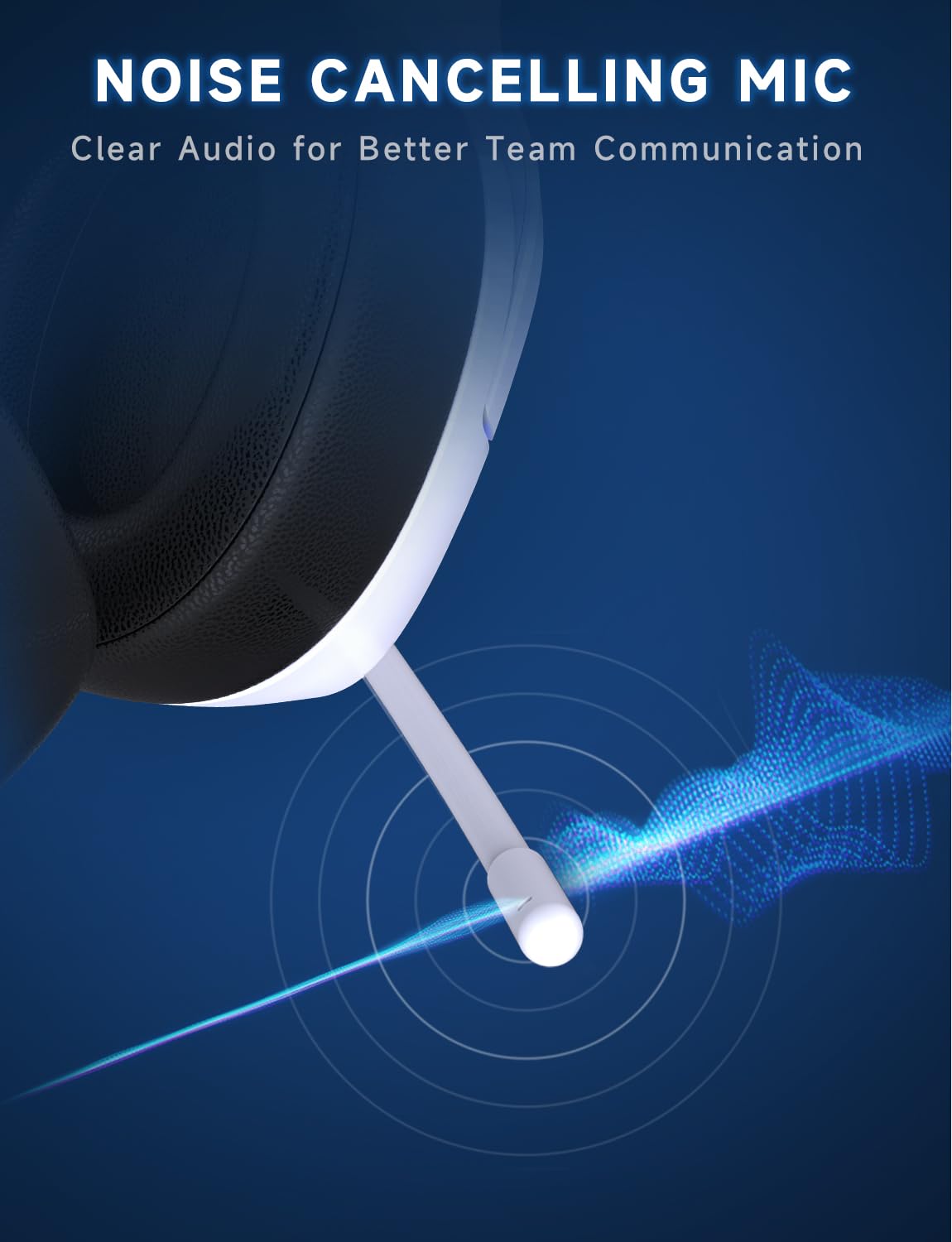 Gvyugke 2.4GHz Wireless Gaming Headsets for PS5, PS4, PC, Switch - Bluetooth 5.3 Gaming Headphones with Noise Canceling Mic, 7.1 Surround Sound, 70H Battery, Blue Lighting - White