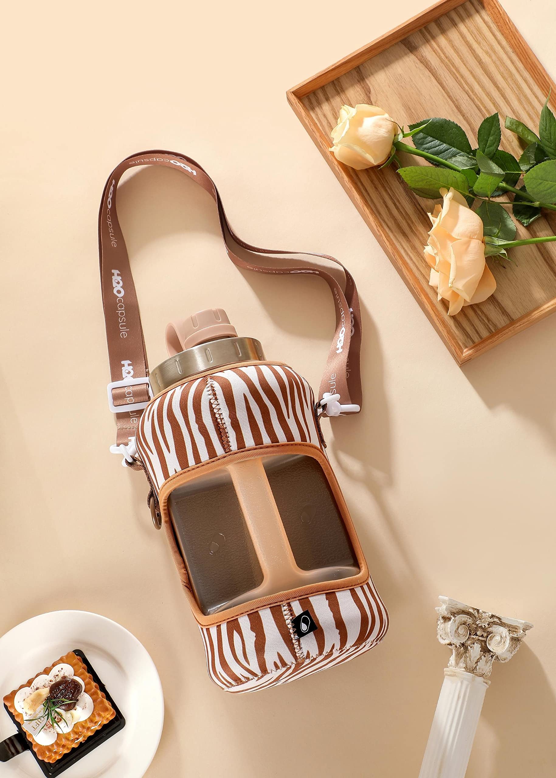 H2O Capsule 2.2L Half Gallon Wide Mouth Water Bottle with Storage Sleeve and Removable Straw - Hydration Tracker Jug with Measurements Marked – Shatterproof BPA-Free, (Libra Zebra)
