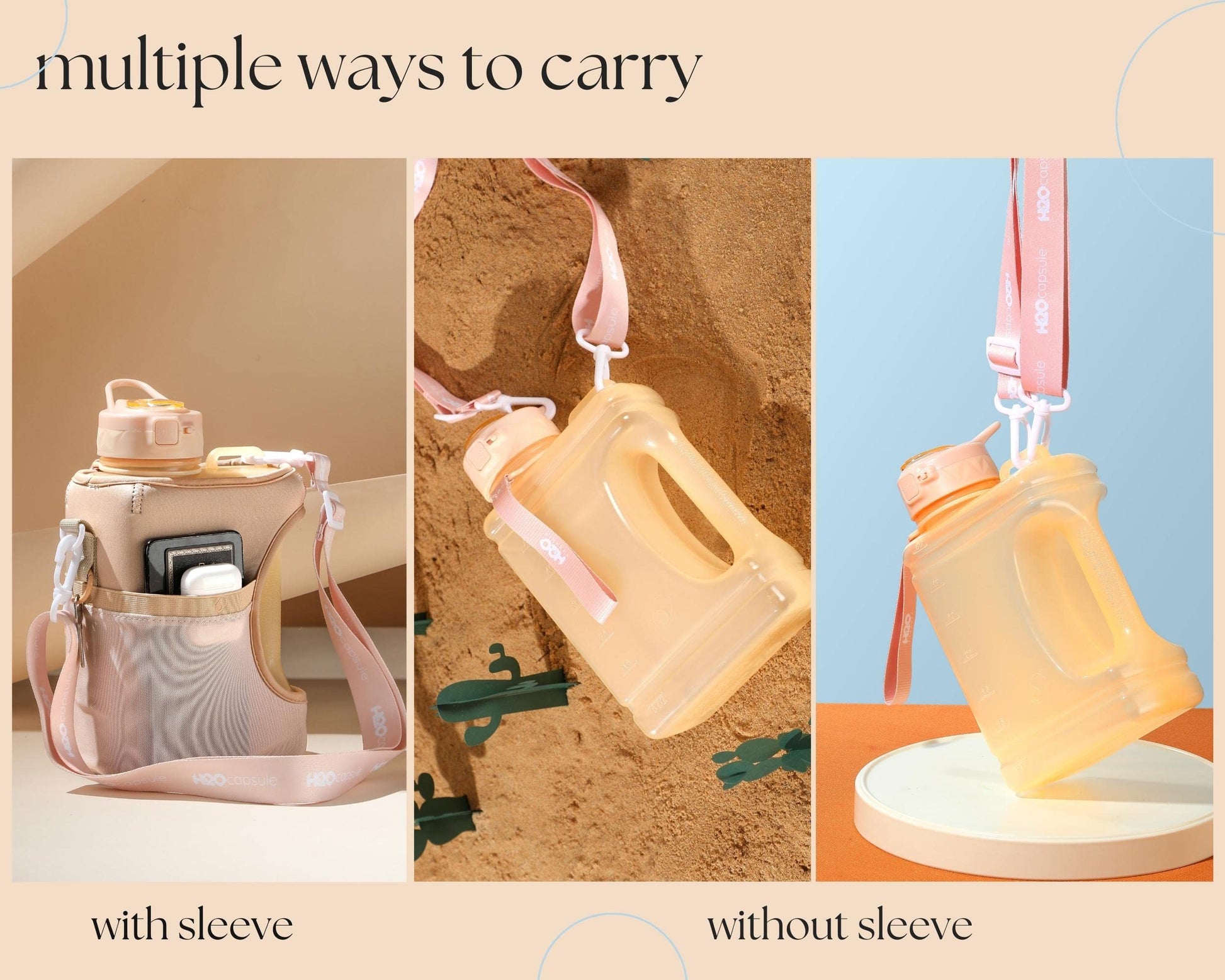 • STAY HYDRATED IN STYLE: No more wrestling with your keys, or leaving your phone on the dirty gym floor. The H2O Capsule is the only sports water bottle with a protective sleeve that doubles as handy storage! Hold your phone, keys and cards while you work out and look good doing it. This half gallon jug is designed with durable materials with a handle to carry wherever you go!