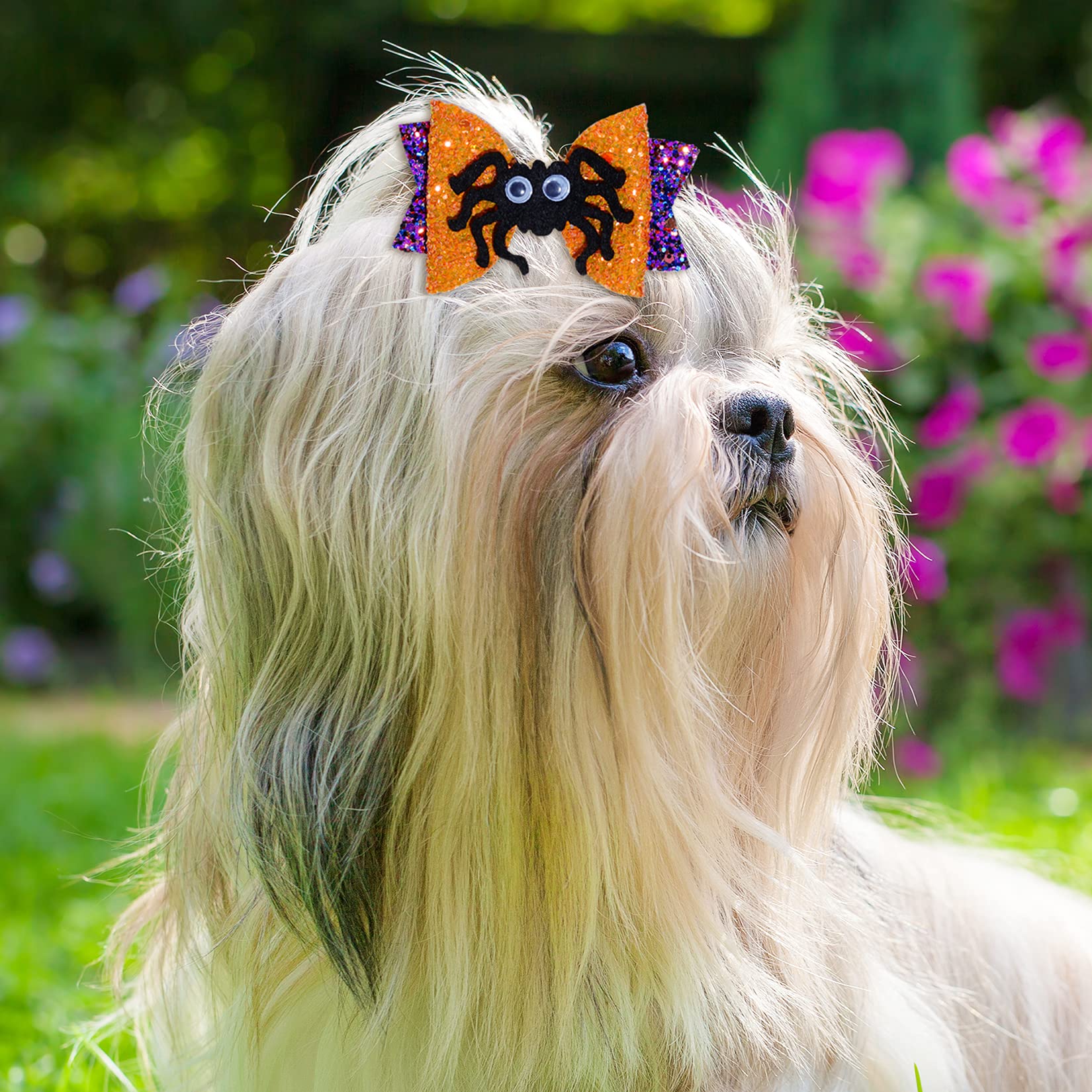 Haakong 8Pcs Halloween Hair Accessories Headdress Halloween Glitter Bows Spider Hair Clip Pumpkin Hair Bow Ghost Hair Barrette Glitter Hair Clip Girls Party Dance Hair Barrettes