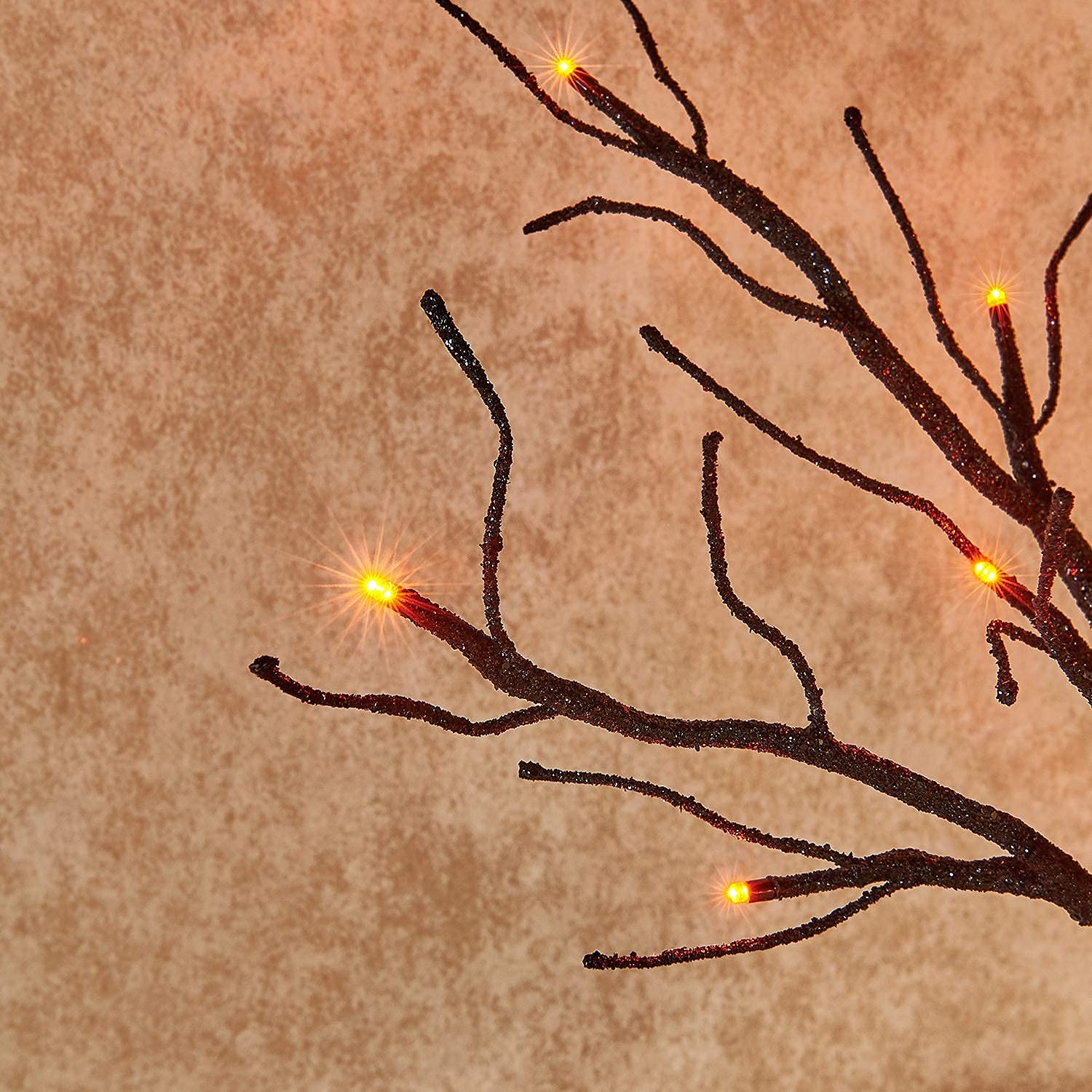 Hairui Lighted Tabletop Black Glittered Spooky Tree with Orange Lights 24 LED 18 Inches for Halloween Witch Decoration Battery Operated or USB Plug in Indoor Use
