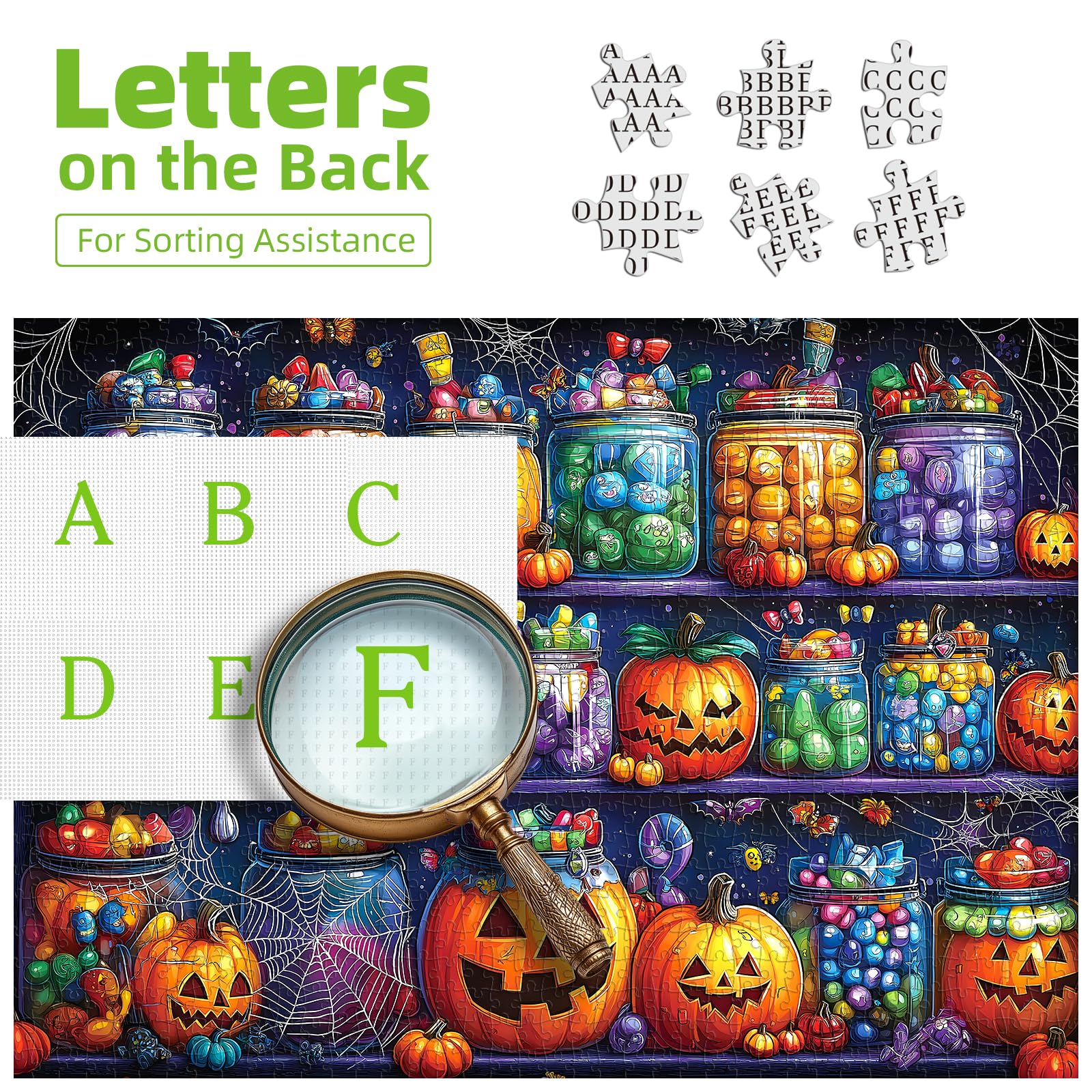 • 🎃 Spooky Halloween Delight: Immerse yourself in this 1000 piece puzzle for adults, featuring candy-filled mason jars and grinning jack-o'-lanterns. A perfect jigsaw puzzle for Halloween lovers, with vibrant colors and intricate details for a festive challenge.