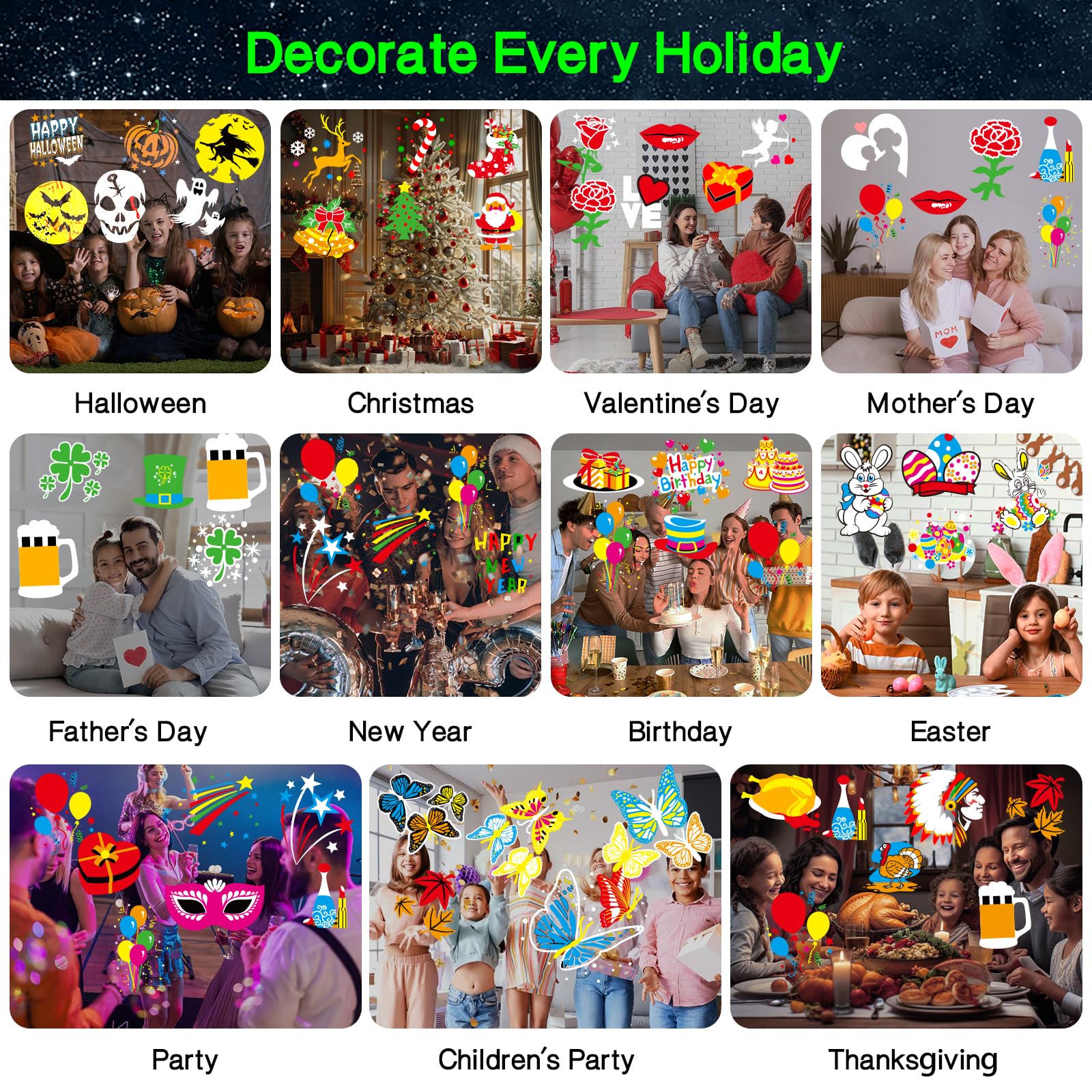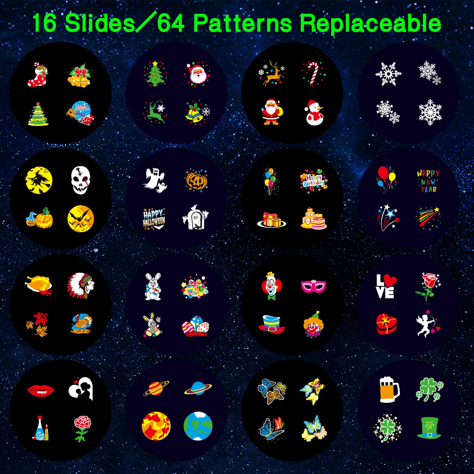 • 【16 Switchable Slides & Wide Application】MOSSNDAR Halloween projector has 64 festival patterns, including Halloween, Christmas, New Year, Snowflakes, Thanksgiving, Carnival, Easter Day, St. Patrick's Day, Valentine's Day, Mother's Day, Children's Day, birthday, party. This Christmas projector can create awesome festival atmosphere and it's perfect for year-around celebration.
