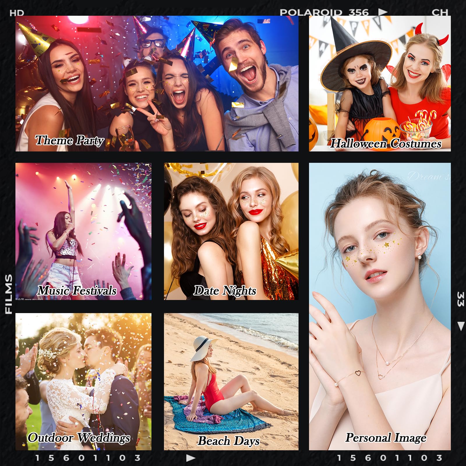 • Waterproof & Long for All Night——Crafted from premium waterproof materials, these Halloween Face Patches are built to keep up with your Halloween adventures. Glitter Freckle staying vibrant and intact through hours of dancing, candy collecting, or haunted house visits—so you can stay stylish and festive from party start to midnight.​