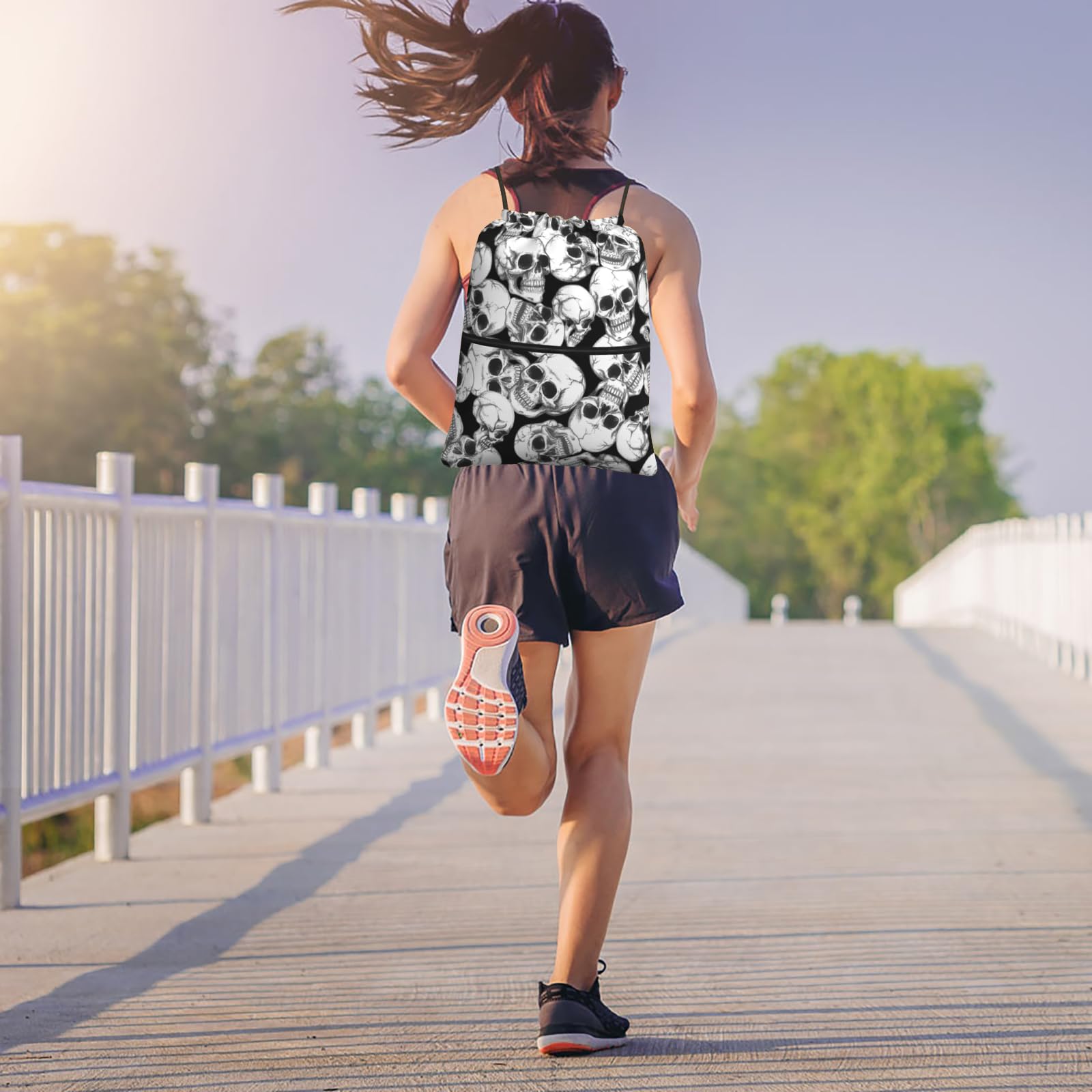 Halloween Goth Skull Drawstring Backpack, Gothic Black White Skeleton Drawstring Bag, Waterproof Durable String Sackpack, Large Capacity Cinch Sackpack for Yoga Sport Beach Gym Shopping