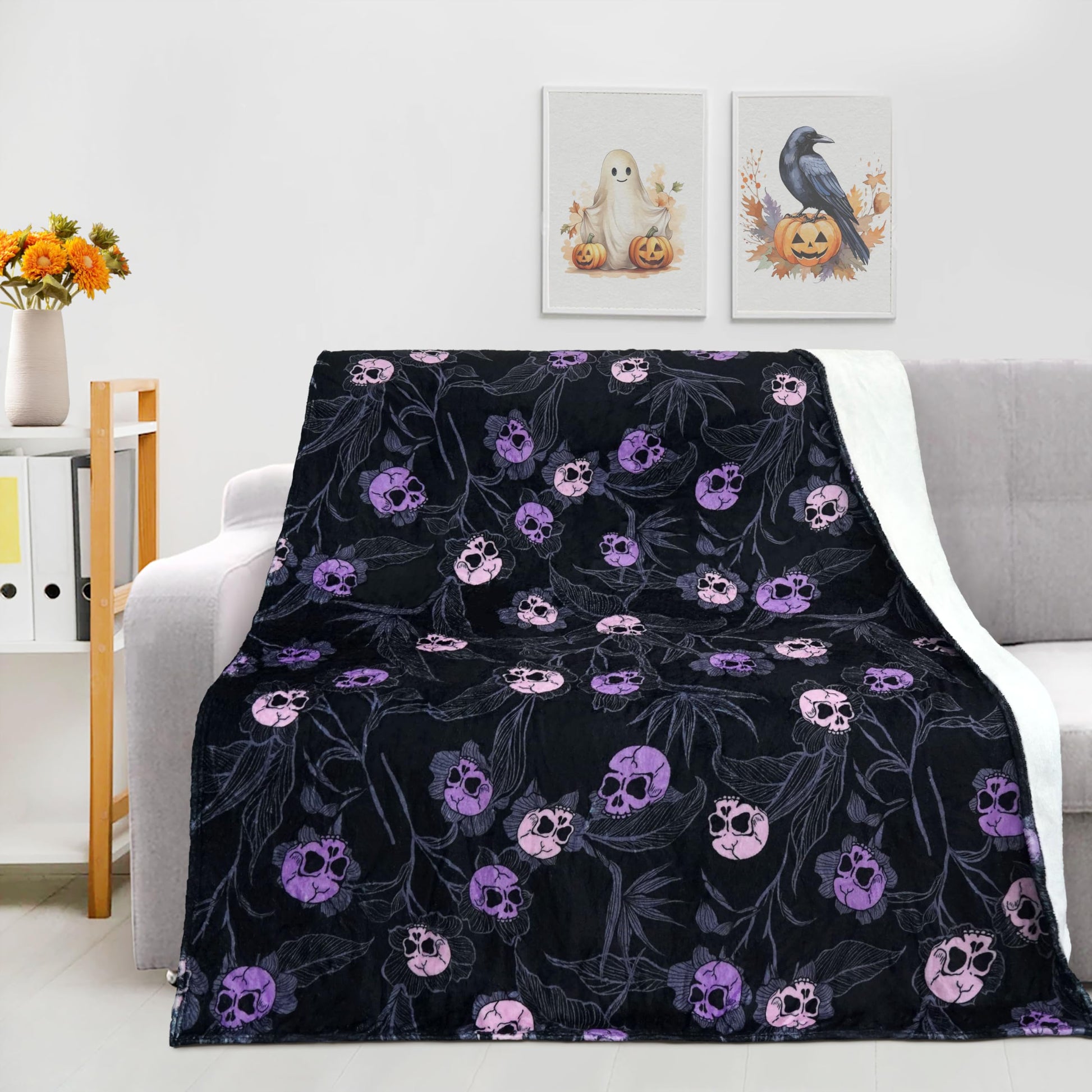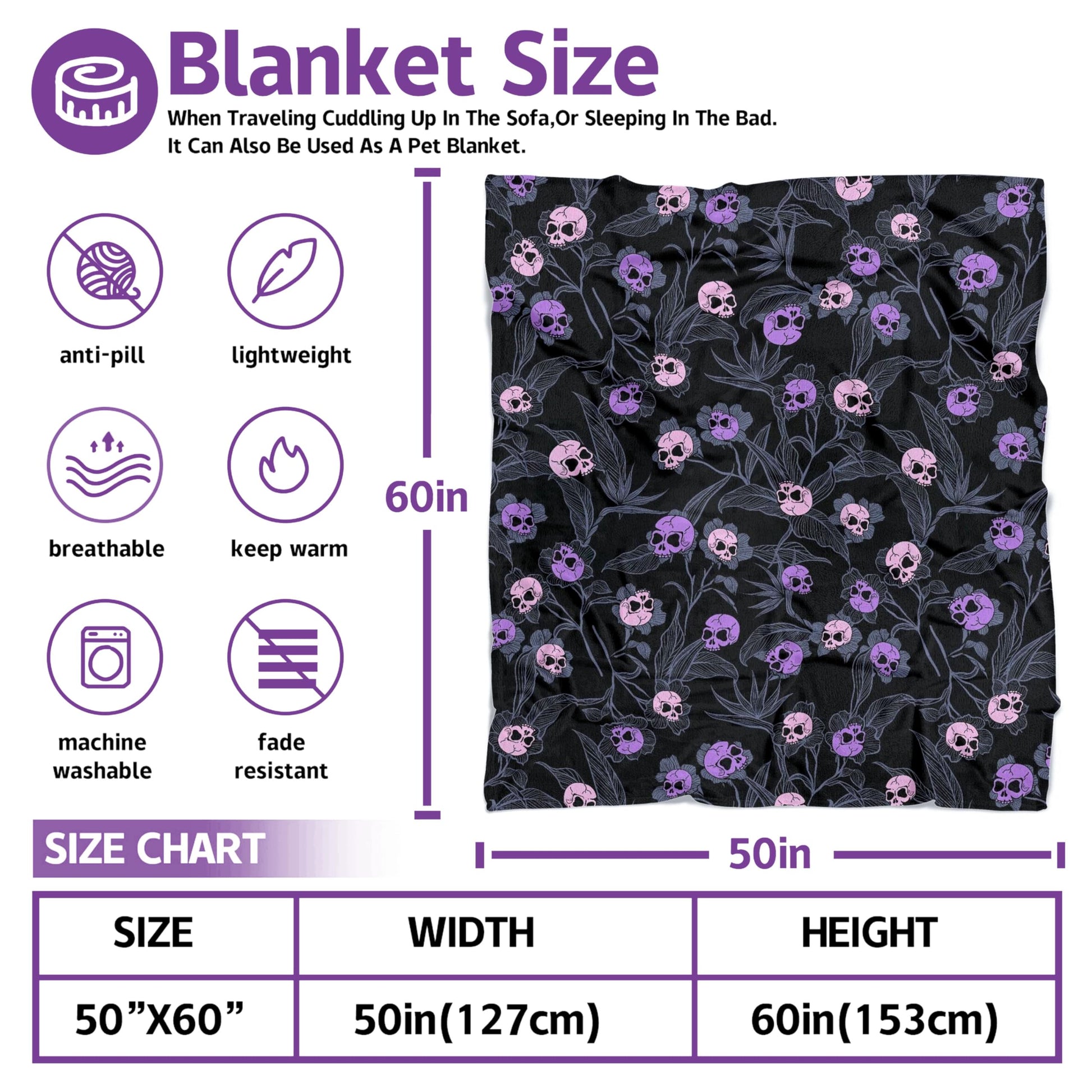Halloween Goth Skull Throw Blanket 50x60 Inch Gothic Skeleton Blankets Soft Lightweight Cozy Plush Blanket for Halloween Decor Gifts