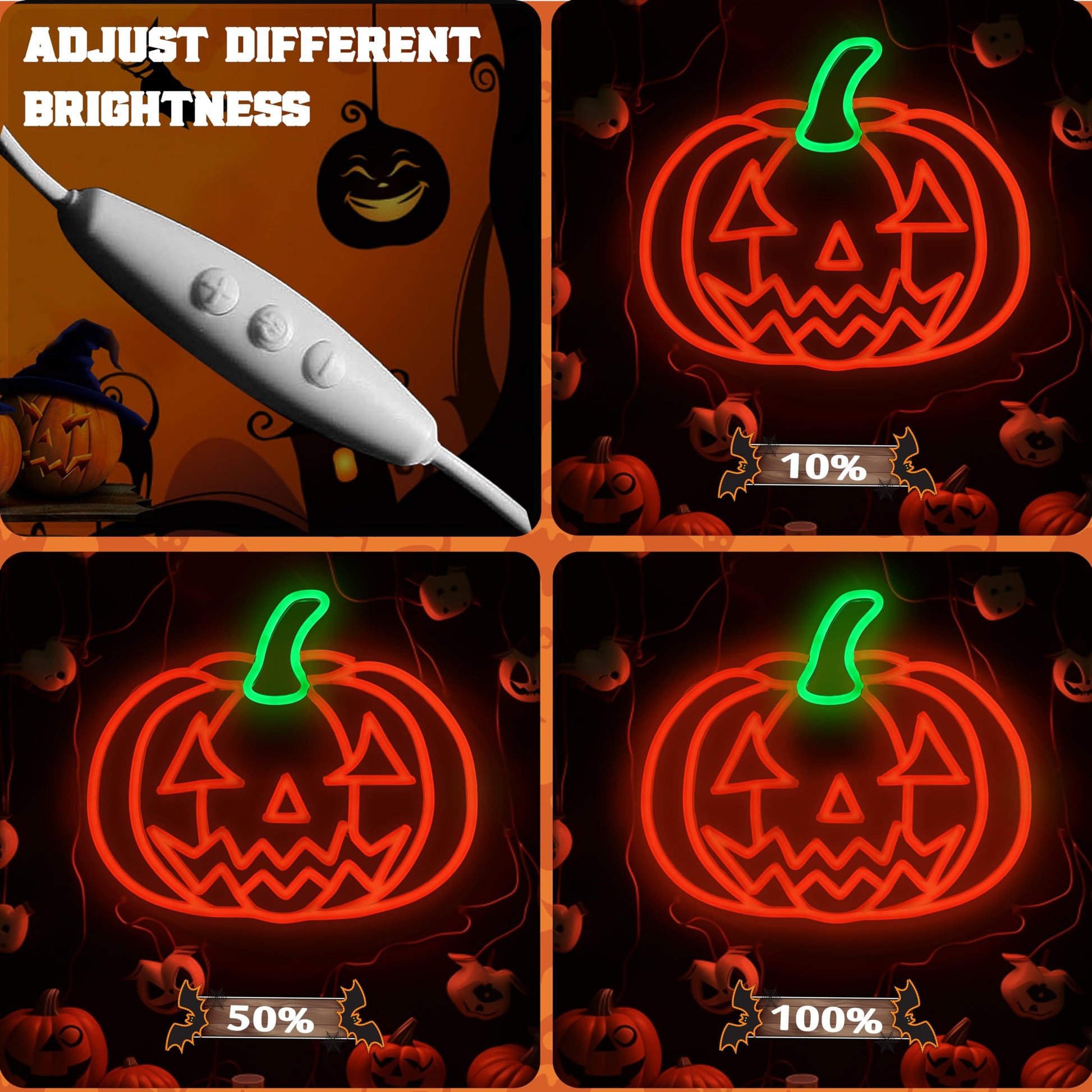 Halloween Neon Sign, Halloween Pumpkin Neon Light Battery or Usb Powered for Wall Decor, Adjustable Brightness Halloween Neon Light(12.9 x 11.8 inches)