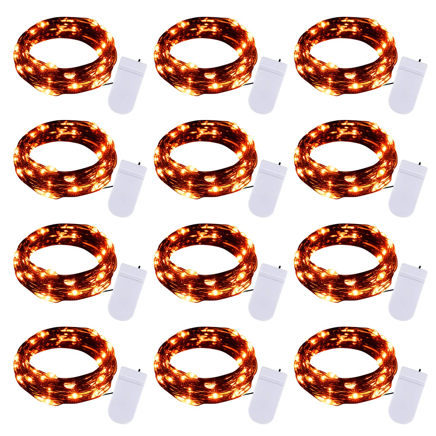 Halloween Orange Fairy String Lights: 12 Pack 7 Ft 20 LED Battery Operated Firefly Lights on Black Wire Starry Moon Lights for DIY Party Bedroom Patio