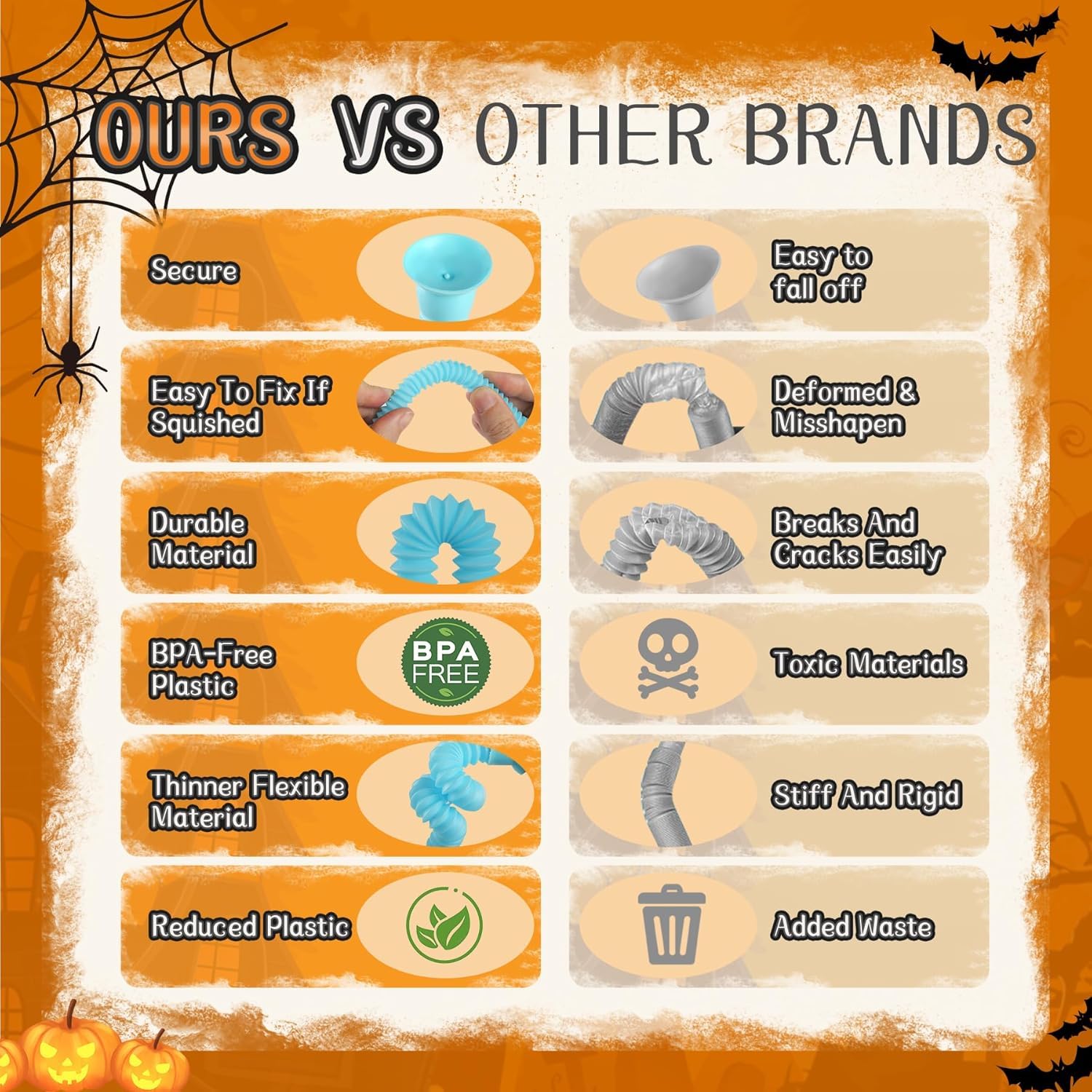 • 【Fidget toys for kids】Halloween pop tubes fidget toy withstand lots of popping, stretching, and bending, ensuring long-lasting fun. pop tubes fidget toys for kids are designed for comfort and easy handling. Perfect for car rides or airplane travel!.