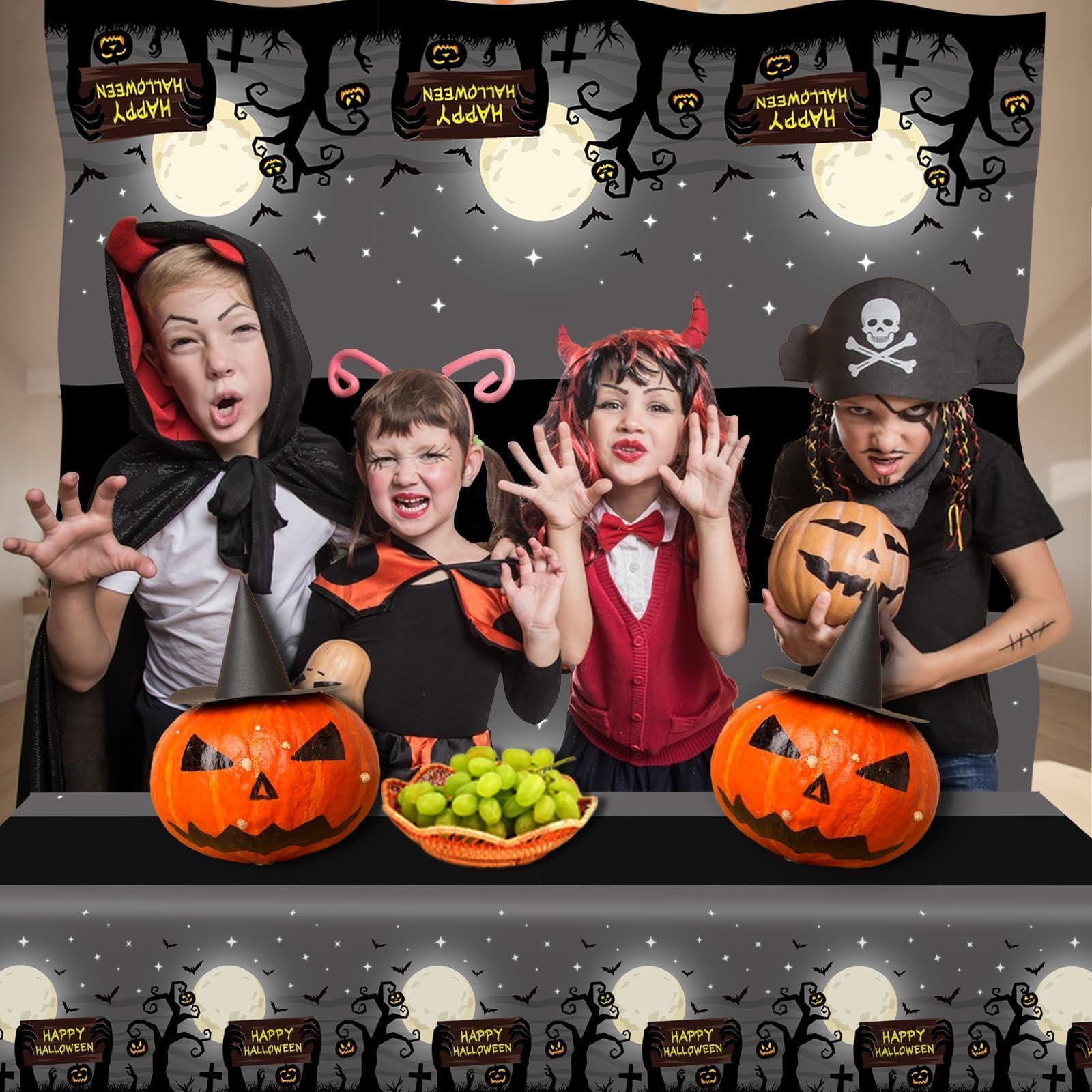 • Quick and Easy Clean-Up: The Halloween tablecloth can protect your tables from spills and messes!Roll it up and toss away can help you save more time, no need to worry about cleaning work after party.Enjoy the happy time during party!Great for Halloween parties supplies, which is an perfect choice for creating wonderful party atmosphere