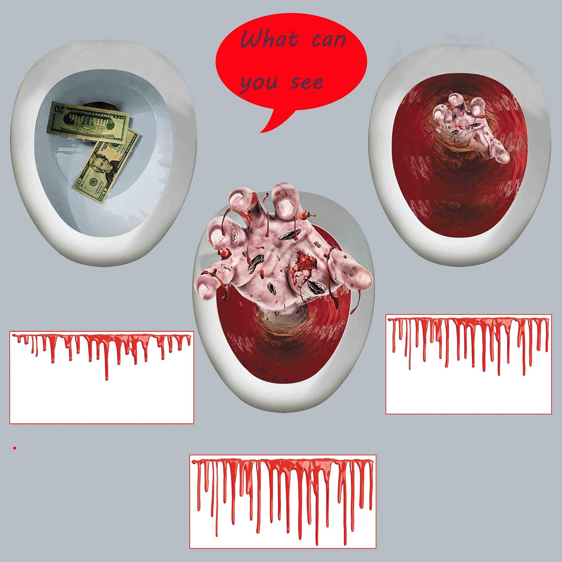 Halloween Toilet Seat Cover 3D Horror Morphing Decal for Halloween Theme Party Home Decor (Zombie Hand&Dollar&Blood)