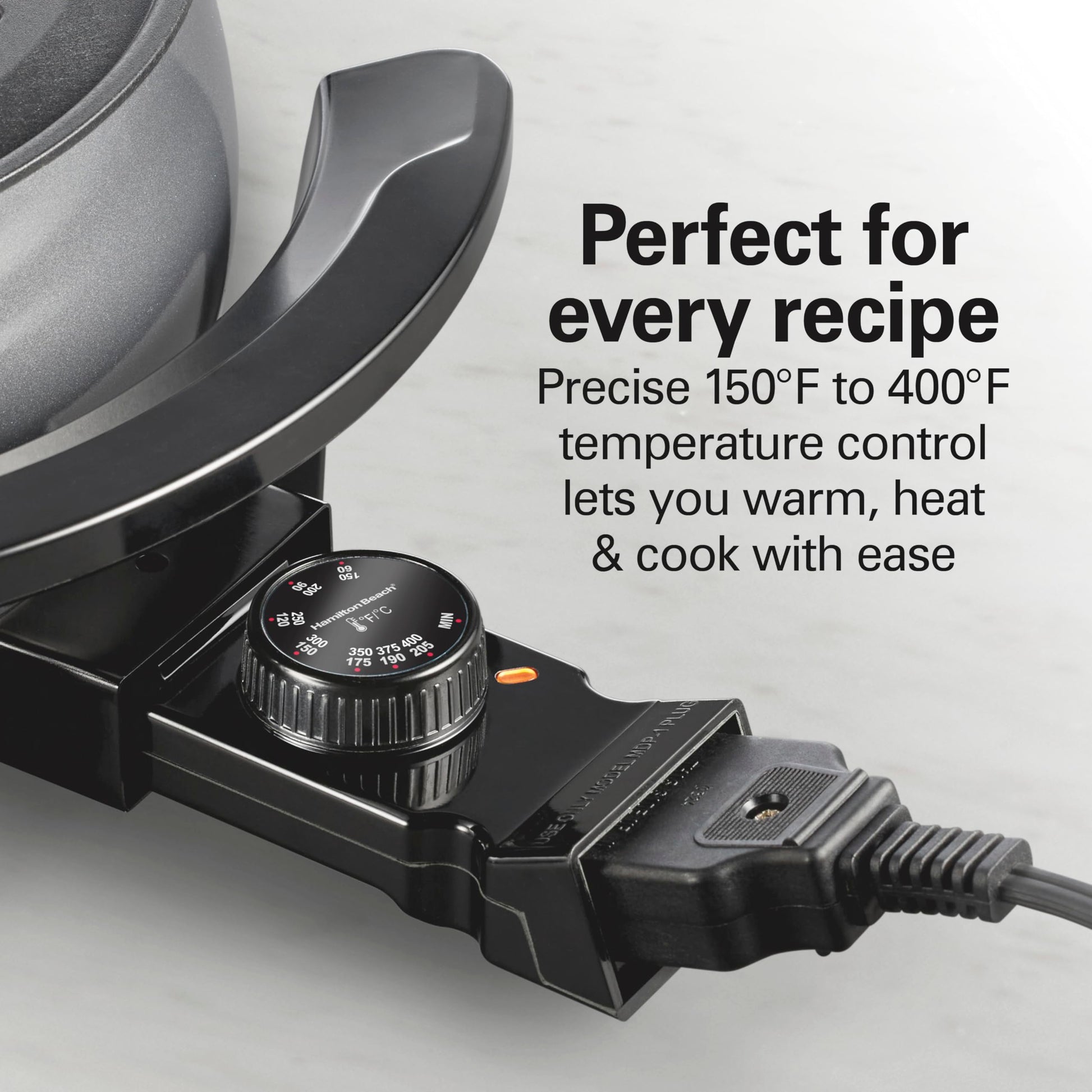 • PRECISE 150°F - 400°F TEMPERATURE CONTROL: Gently warm chocolate or another sweet dip for an elegant dessert, make cheese fondue, or heat oil or broth — the adjustable temperature control lets you warm, heat and cook anything with ease.