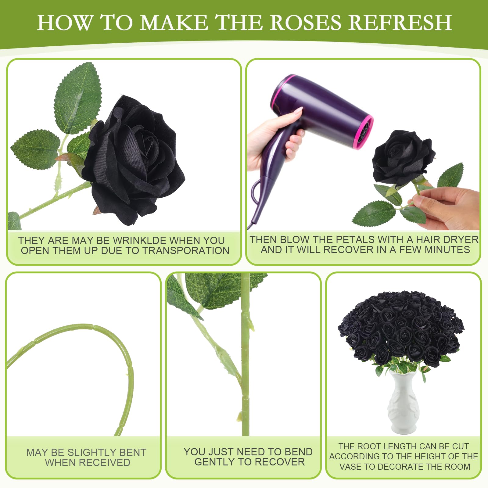 • VERSATILE: Artificial rose is a perfect decoration for in indoor and outdoor, wedding. Especially for Halloween decor. it can be a wonderful centerpiece by simply put them in a jar or vase.