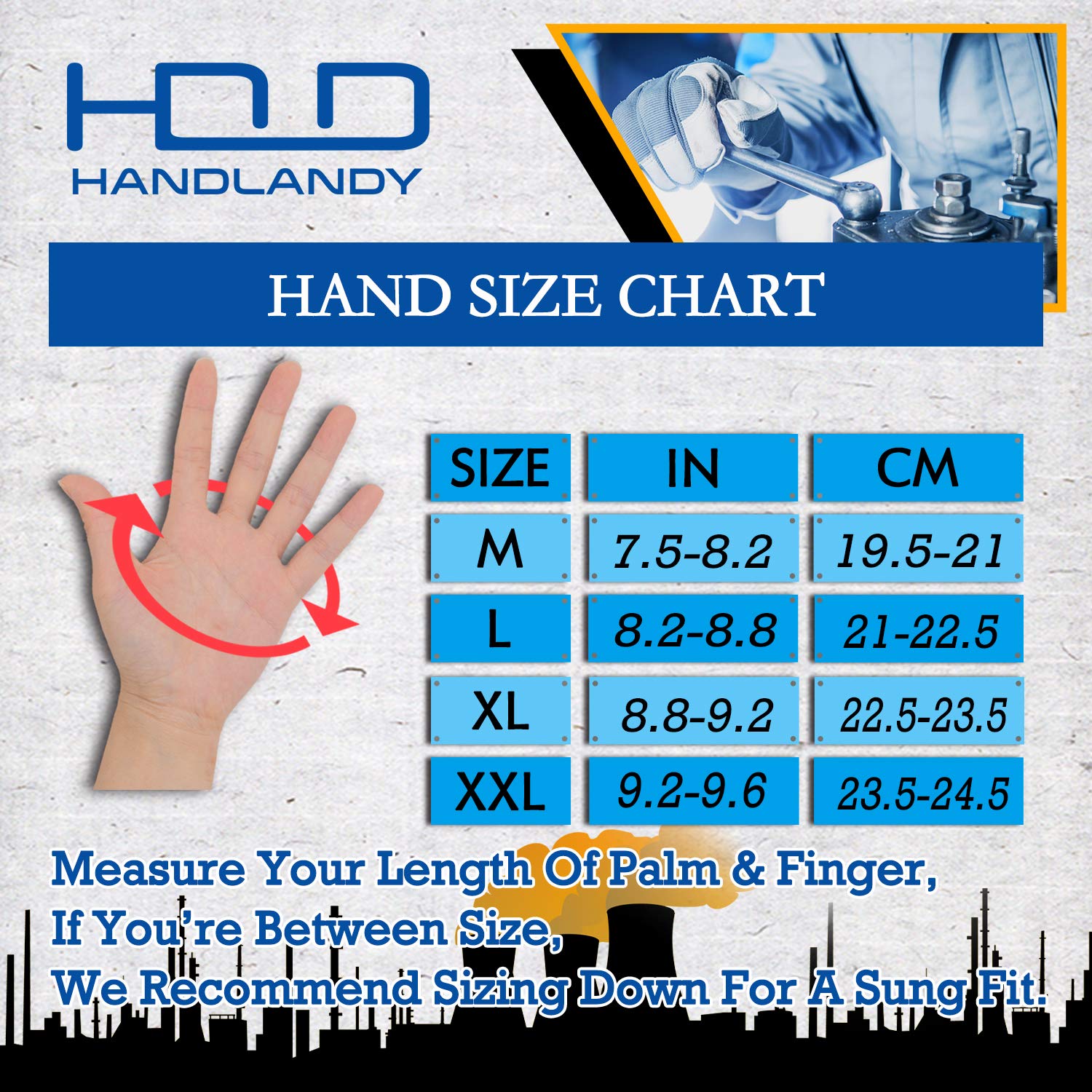 HANDLANDY Anti Vibration Gloves, SBR Padding, TPR Protector Impact Gloves, Men Mechanic Work Gloves XXL