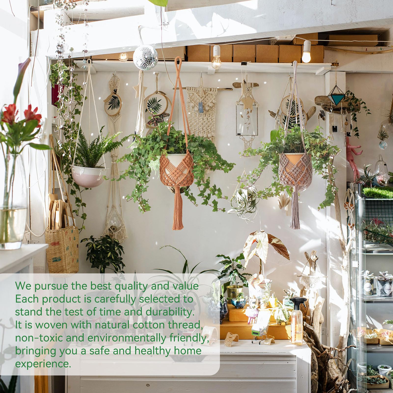 • VERY STRONG - Each crochet plant hangers is hand-woven by artisans, warm color, three-dimensional texture, very strong and durable, multi-strand weaving, not easy to pull off.Indoor plant hangers made of 100% cotton rope, no lint, no odor. Please feel free to use. Please do not machine wash.