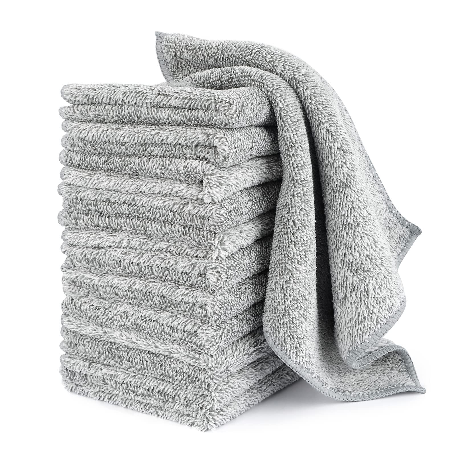 HAOBAOBEI Kitchen Cloth Dish Towels (12 Pack), Premium Dishcloths, Super Absorbent Microfiber Cleaning Cloth, Nonstick Oil Washable Fast Drying Dish Rags for Washing Dishes (Grey)