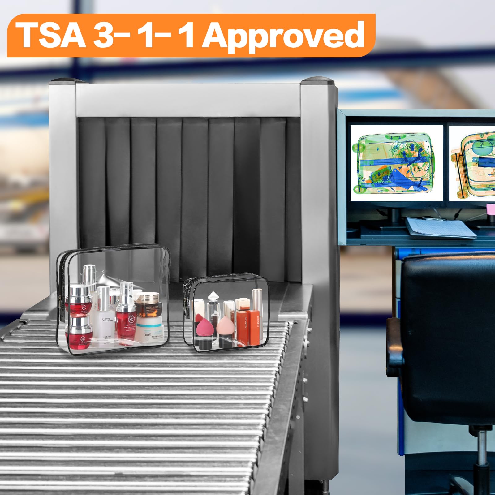 TSA APPROVED - TSA approved clear travel bag strictly follow 3-1-1 regulations, you won't have to worry pass through airport security. All makeup bags made of transparent PVC material, BPA free. The Strong thickness makes the bag more durable and easy to clean, it is reusable