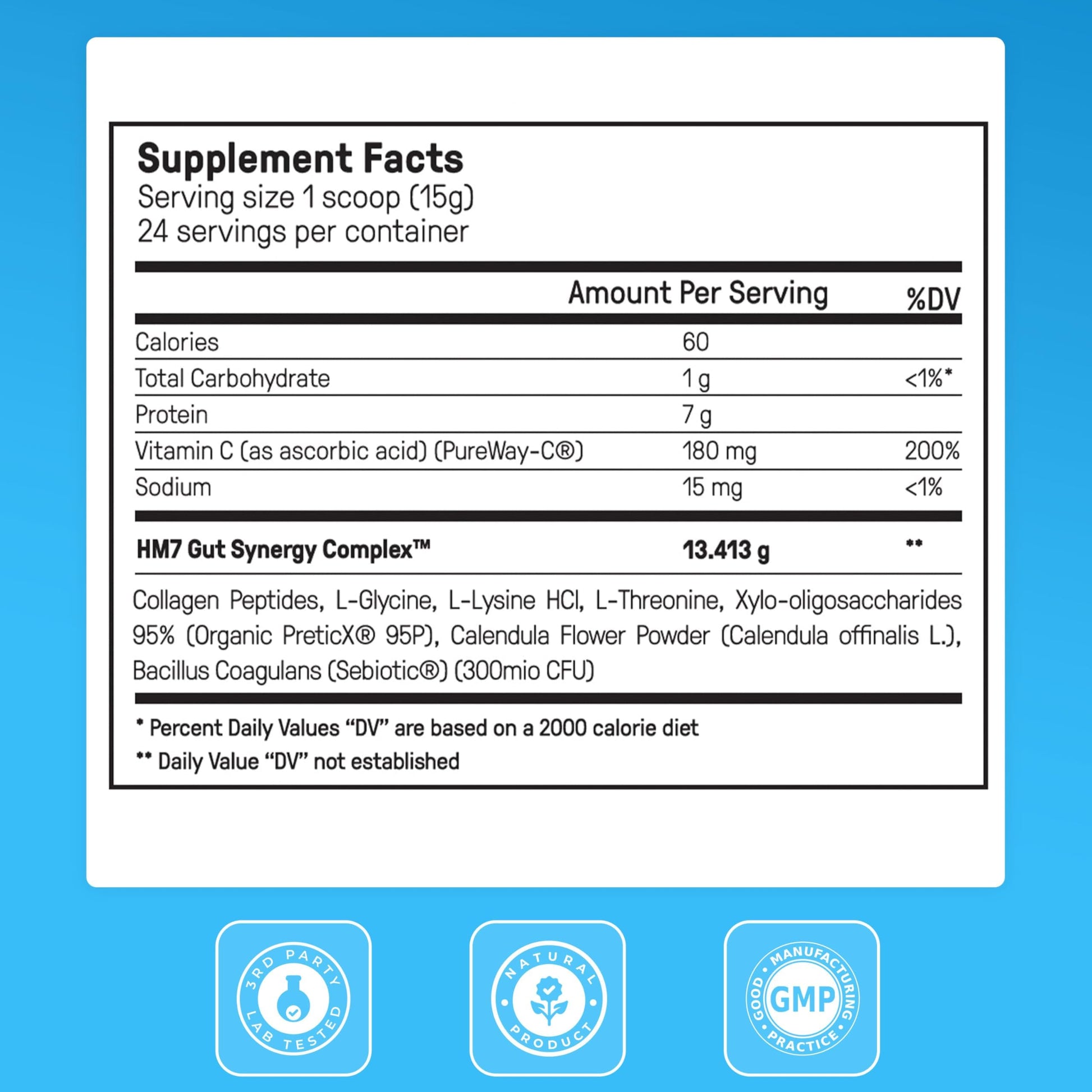 Happy Mammoth Complete Gut Repair Probiotic, Prebiotic, Fiber & Collagen Supplement for Gut Health, Digestion, Healthy Gut Microbiome, Reduces Constipation & Bloating 24 Servings, Vanilla Flavor