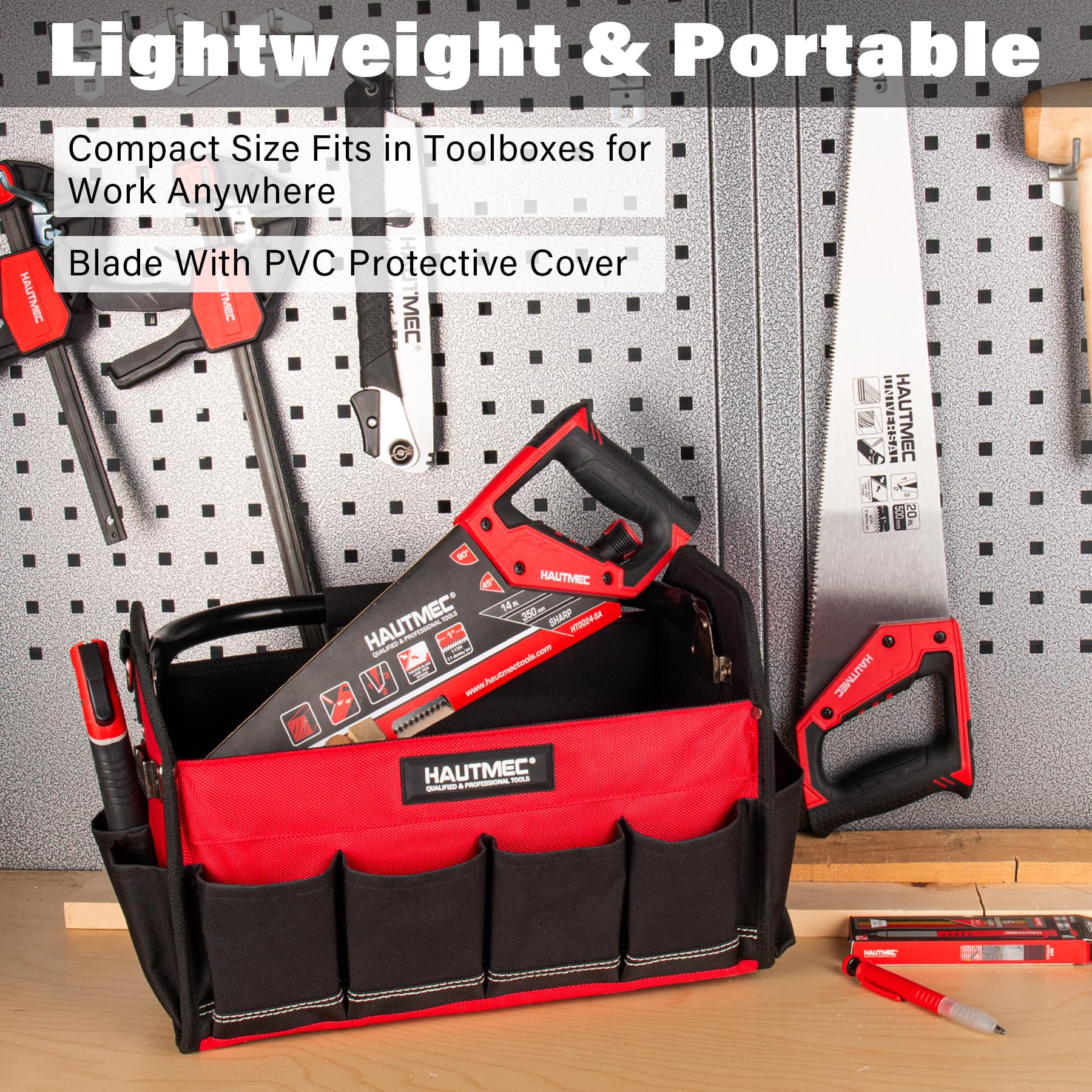 HAUTMEC 14" Universal Hand Saw, 11 TPI Fine Cut Wood Saw with Hardened Triple-Ground Teeth & Bi-Material Ergonomic Handle, Compact Handsaw for Wood, Plastic, PVC, Laminate & Branch Cutting – HT0024