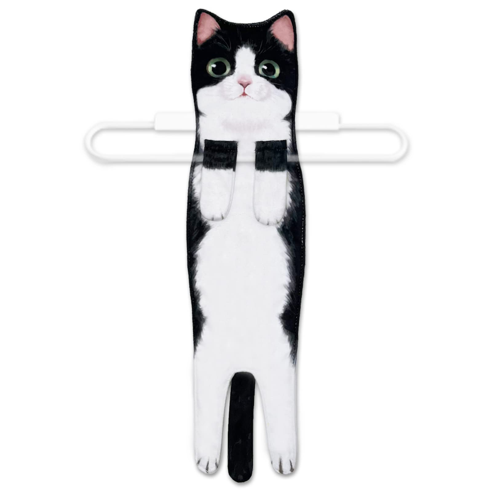• Cat Hand Towel: This fun kitten towel perfectly blends the cute shape of a kitten with a hand towel. The kitten's paw has a snap design, so it can be hung securely on the towel rack. When hanging from the towel rack, the kitten hand towel can remain upright, maintaining its fun and cute appearance. After washing your hands, you won’t be able to resist wiping them on this adorable kitten hand towel. Stroking this soft towel not only dries your hands, it also can help improve your mood.