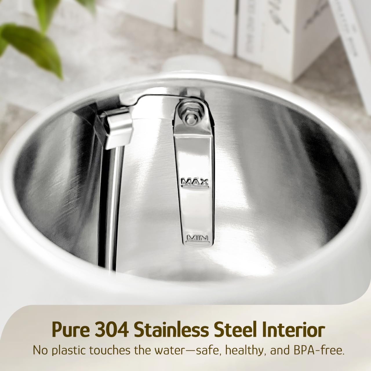 • All Stainless Steel - This retro electric kettle is crafted with food-grade 304 stainless steel in its interior, lid, and filter. It has no plastic in contact with the water, providing you and your family with BPA-free healthy drinking.