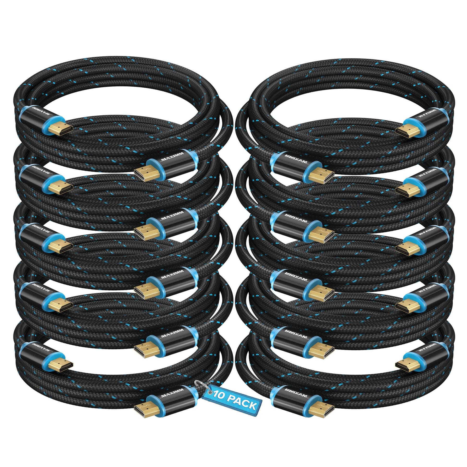 HDMI Cable 4K Ultra HD 6 Foot (10 Pack) Nylon Braided HDMI 2.0 Cable, High Speed 18Gbps 4K60Hz HDR, 3D, 2160p, 1080p, HDCP 2.2, ARC, HDMI Cables for Monitors, HDTV