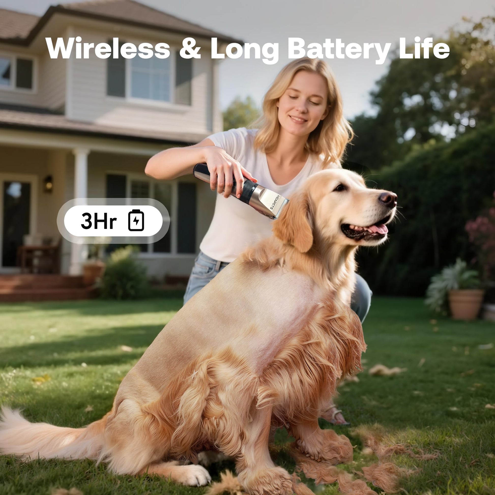 • Cordless Design: The cordless design allows you to be unrestrained during the trimming process, you could groom your pets anywhere. No need to worry about the entanglement of wires, improving the convenience of operation, it is an ideal choice for home and professional pet grooming.