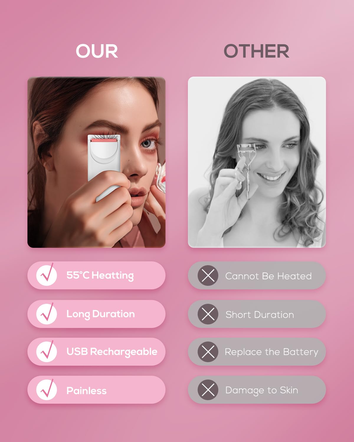 • ⚪【Say Goodbye to Disposable Batteries】hello to our rechargeable electric eyelash curler, with a USB charging cable included, this curler can be easily, More eco-friendly and money-saving charged from any USB port or wall adapter.