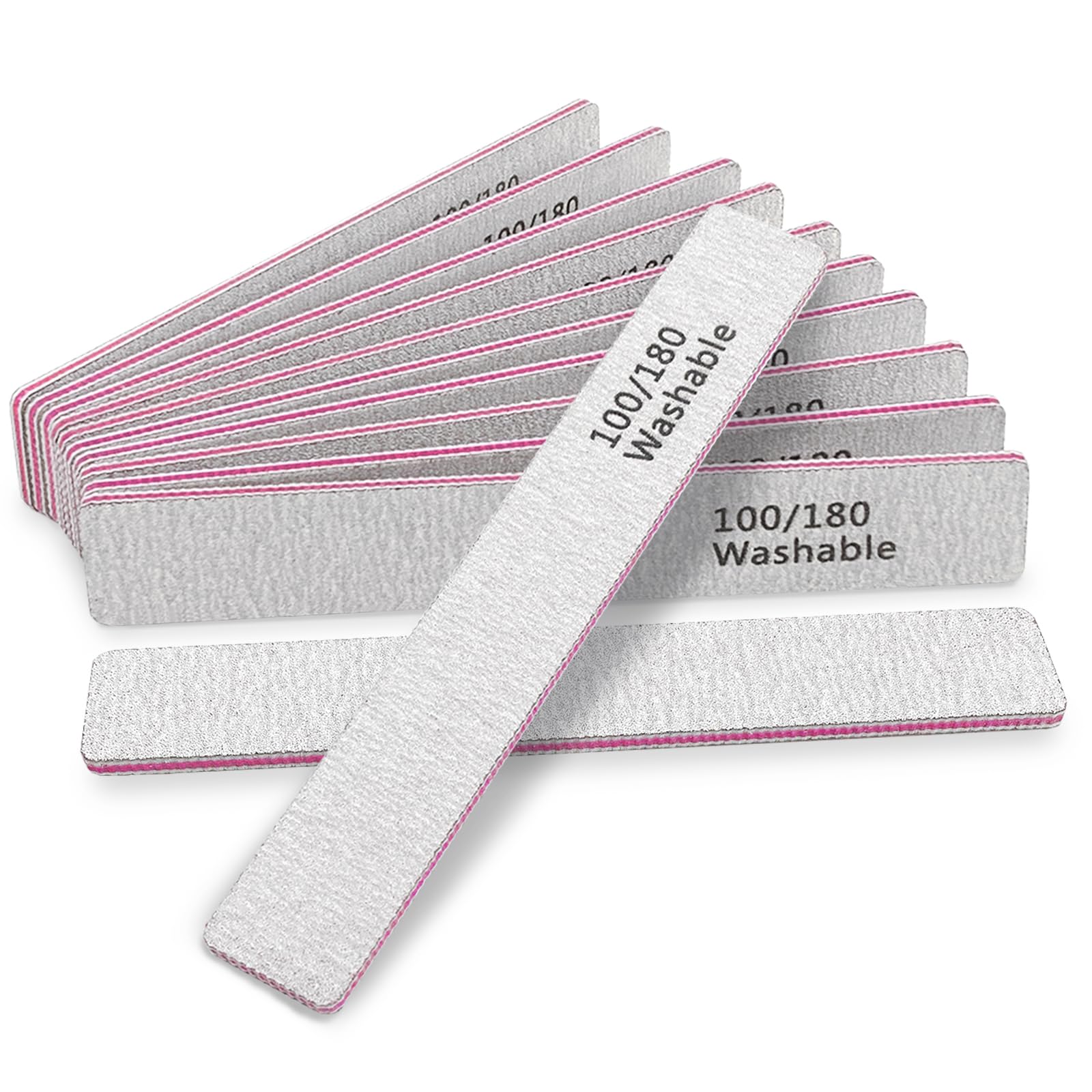 HeeYaa Nail File 12 PCS Professional Reusable 100/180 Grit Double Sides Washable Nail File Manicure Tools for Poly Nail Extension Gel and Acrylic Nails Tools Suit for Home Salon