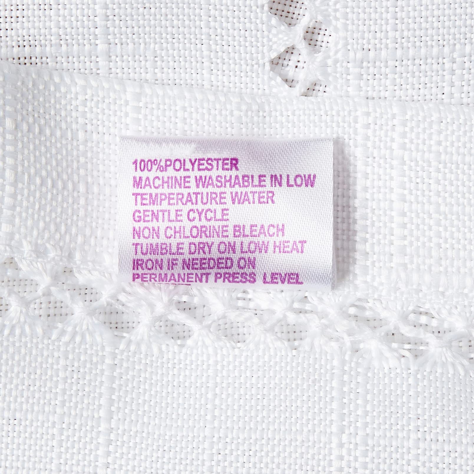 Dresses up dinner. OR any meal. With this appealing tablecloth. Kitchen accessory combines the soft, visual appeal of cotton with the durability of polyester. Hem stitch embroidered vintage design tablecloths. Available in White, oatmeal, blue and mint color options. 100Percent polyester. Machine washable, imported,