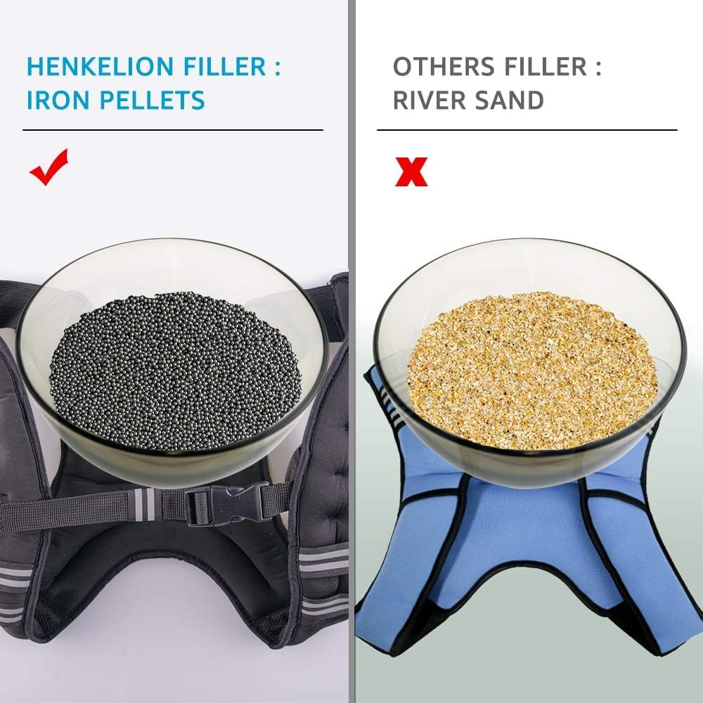 • IRON PELLETS & METAL ROCK - Henkelion weighted vest is filled with premium iron pellets and metal rock rather than using cheap river sand