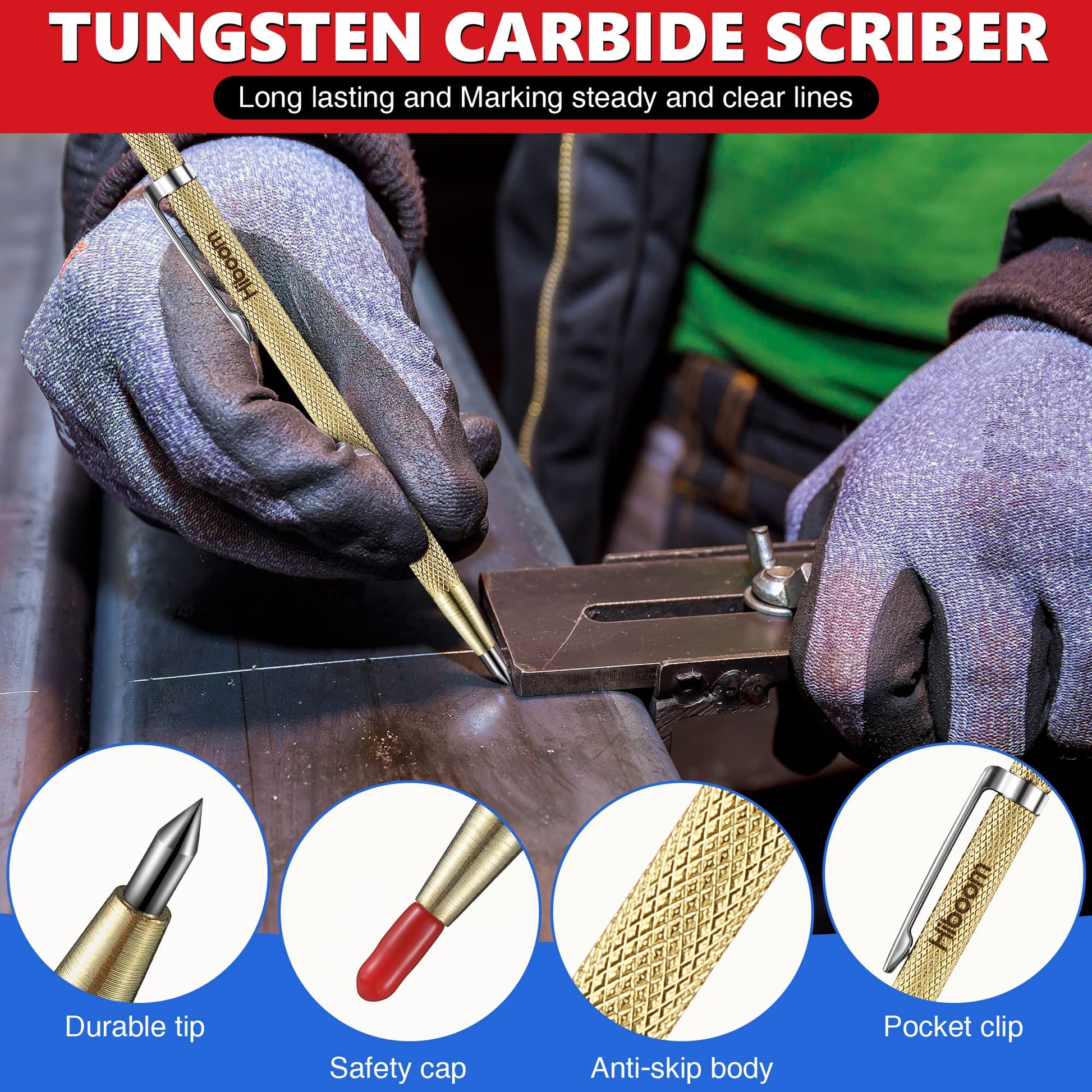 • Precise Metal Carbide Scribe: this etching engraving pen has a reliable tungsten carbide tip and knurled aluminum body, providing more control and comfort; The metal scribe comes with a protective vinyl cap over the scribe tip while not using, to prevent the tip from damaging other things