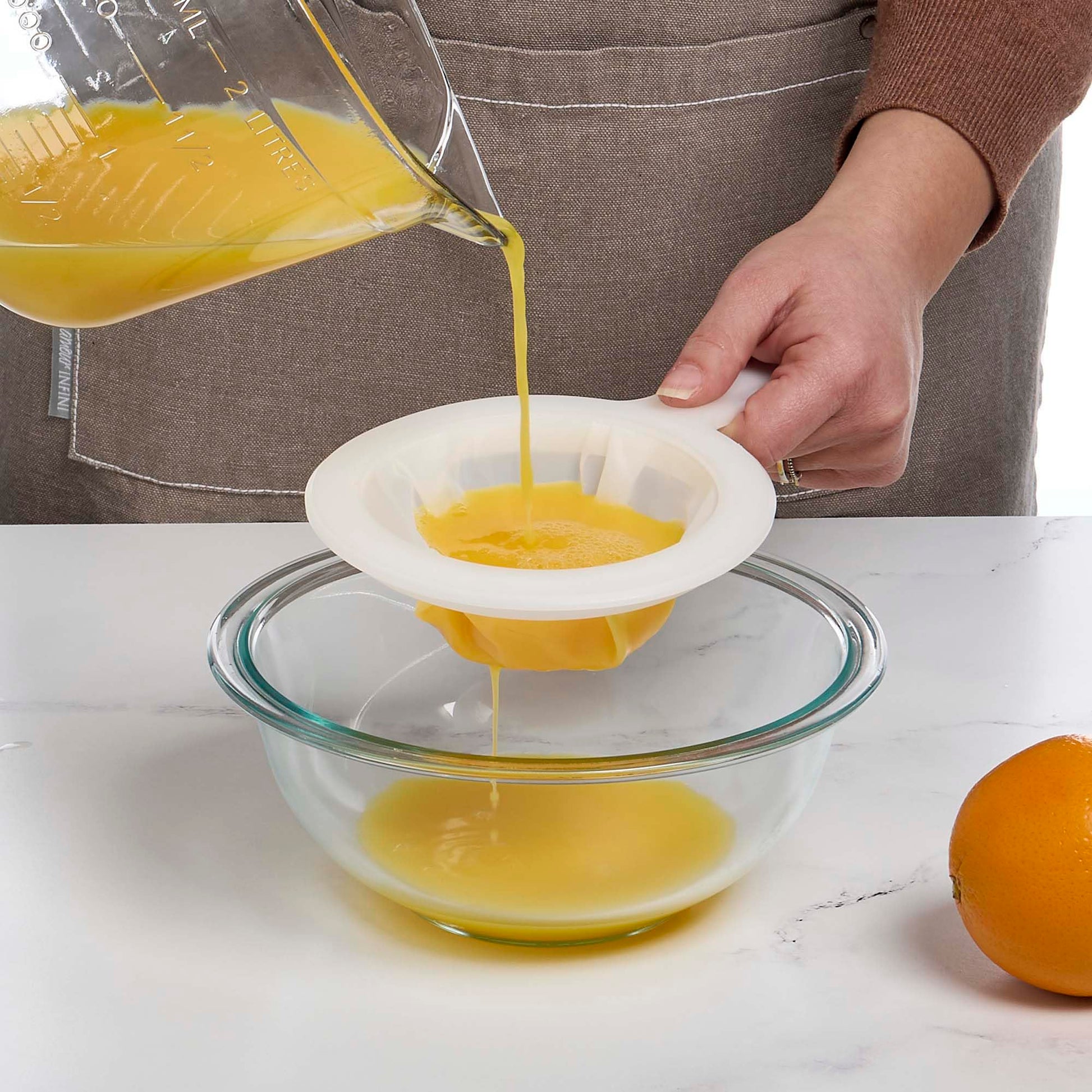 HIC Kitchen’s Double-Ear Fine Mesh Strainers drain, strain, sieve, sift, and aerate ingredients. Their double-ear design sits securely on pots and pans, mixing bowls, and other containers, to keep both hands free for measuring, pouring, and other types of food preparation tasks. Easily extract seeds, skins, fibrous bulk, and smaller bits for even consistencies and creamier textures in soups and sauces, pastes, and purees. For lighter, fluffier baking results, extract clumps and aerate nut, oat, and grain flours, confectioners’ sugar, crushed spices, and other powdered ingredients that tend to settle and compact when they are packaged and shipped. They work nicely to rinse legumes, rice, and grains, catch seeds and pulp from juicing fresh lemons, or drain and strain infusions of herbs or mulling spices, and more. They won’t react with tomatoes, citrus, and other acidic foods. Made from BPA-free plastic, HIC Kitchen’s Double-Ear Fine-Mesh Food Strainers are sturdy, durable, hang for storage, and top-rack dishwasher safe for easy cleanup. Brought to you by HIC, a third-generation family owned and operated company in the USA since 1957.