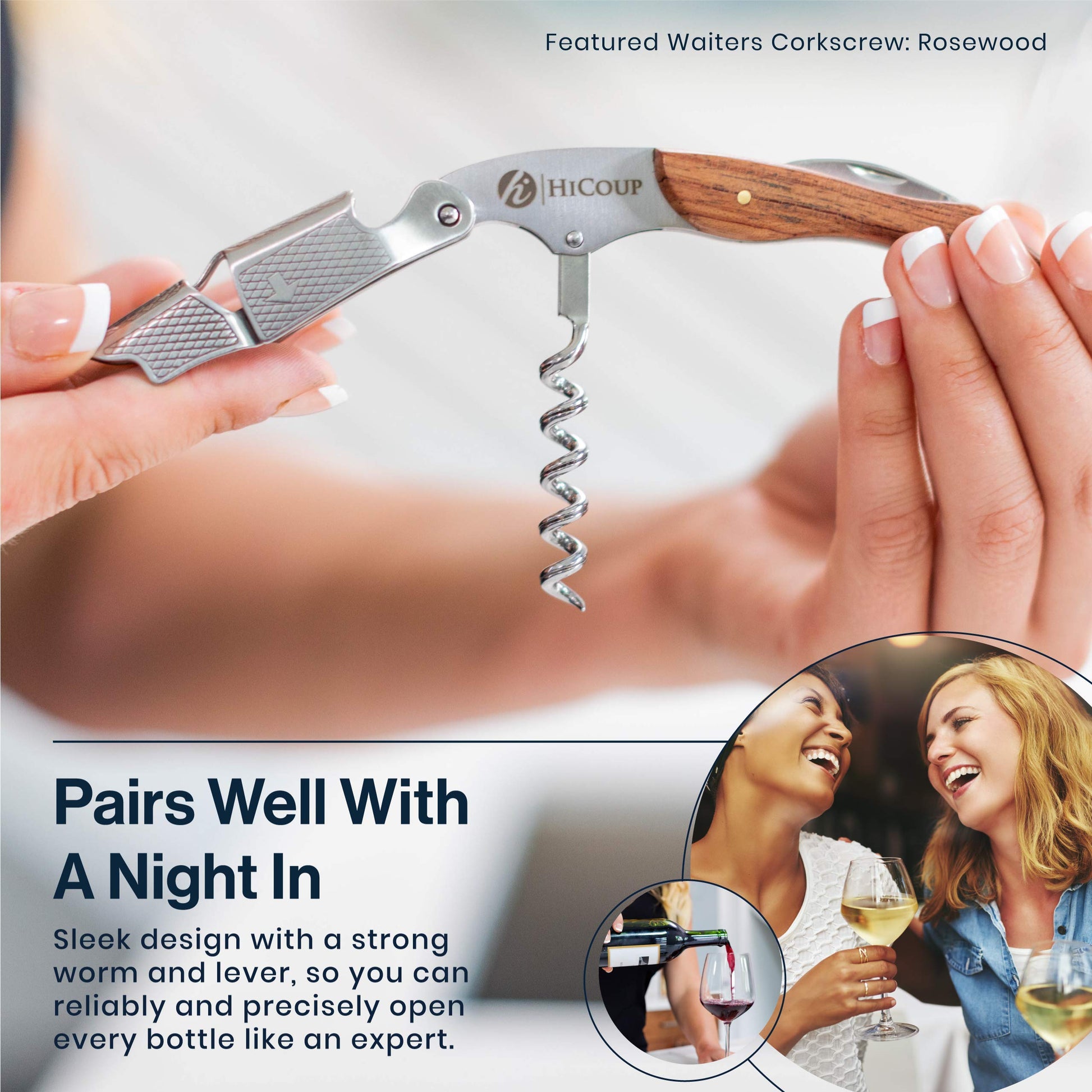HiCoup Kitchenware Wine Opener - Professional Corkscrews for Wine Bottles w/Foil Cutter and Cap Remover - Manual Wine Key for Servers, Waiters, Bartenders and Home Use - Classic Rosewood