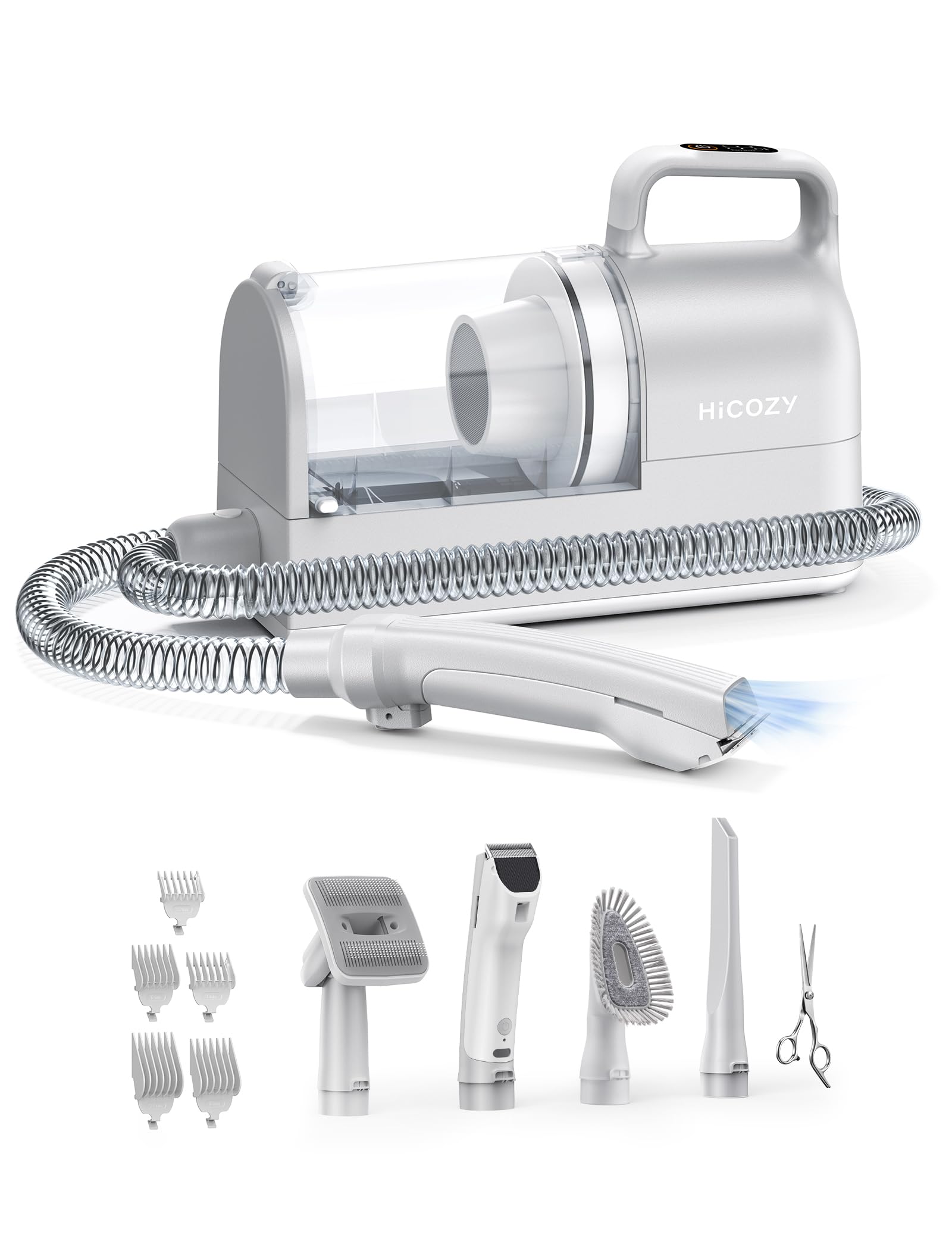 Hicozy S1+ Dog Grooming Vacuum, 12000Pa Minimum 50dB Quiet Dog Vacuum for Shedding Grooming with 2L Dust Cup, 6 Professional Pet Accessories with Clippers, Gray