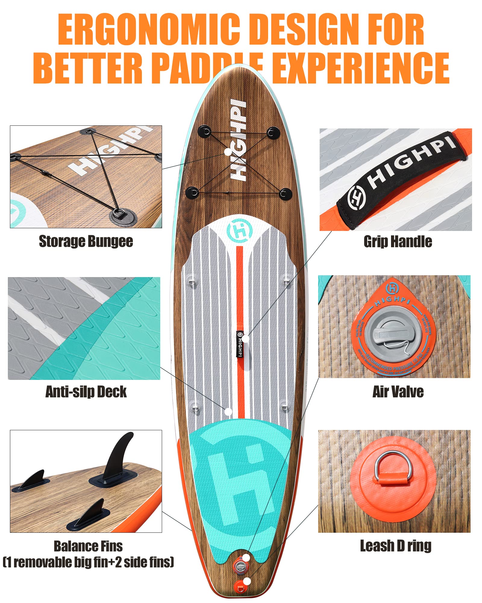 Highpi 11ft Inflatable Stand Up Paddle Board for Youth and Adults – Wide Sup with Premium Accessories, Blow Up Paddleboard for Surfing, Fishing, Yoga & More