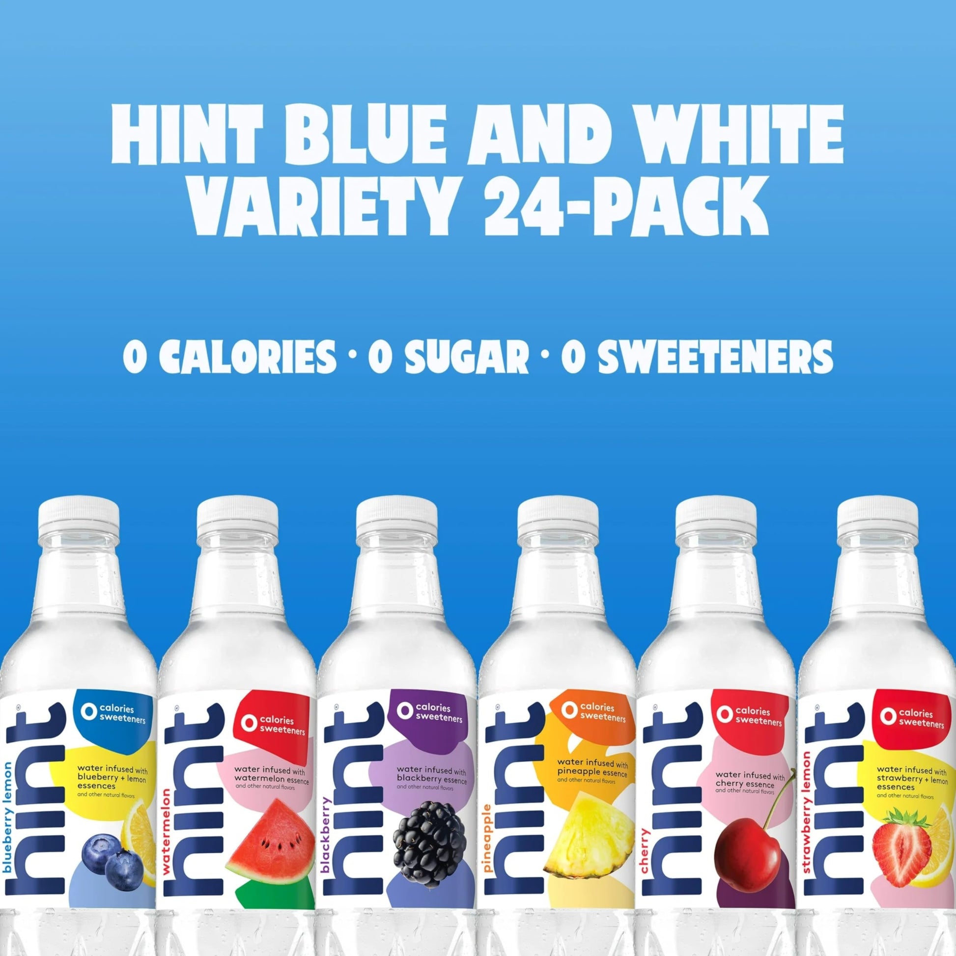 24 Bottles of Hint Flavored Water: Purified, unsweetened, fruit-infused water with over a dozen flavors to choose from, delivering a luscious and zesty drinking water experience that’s perfectly tailored to your taste.
