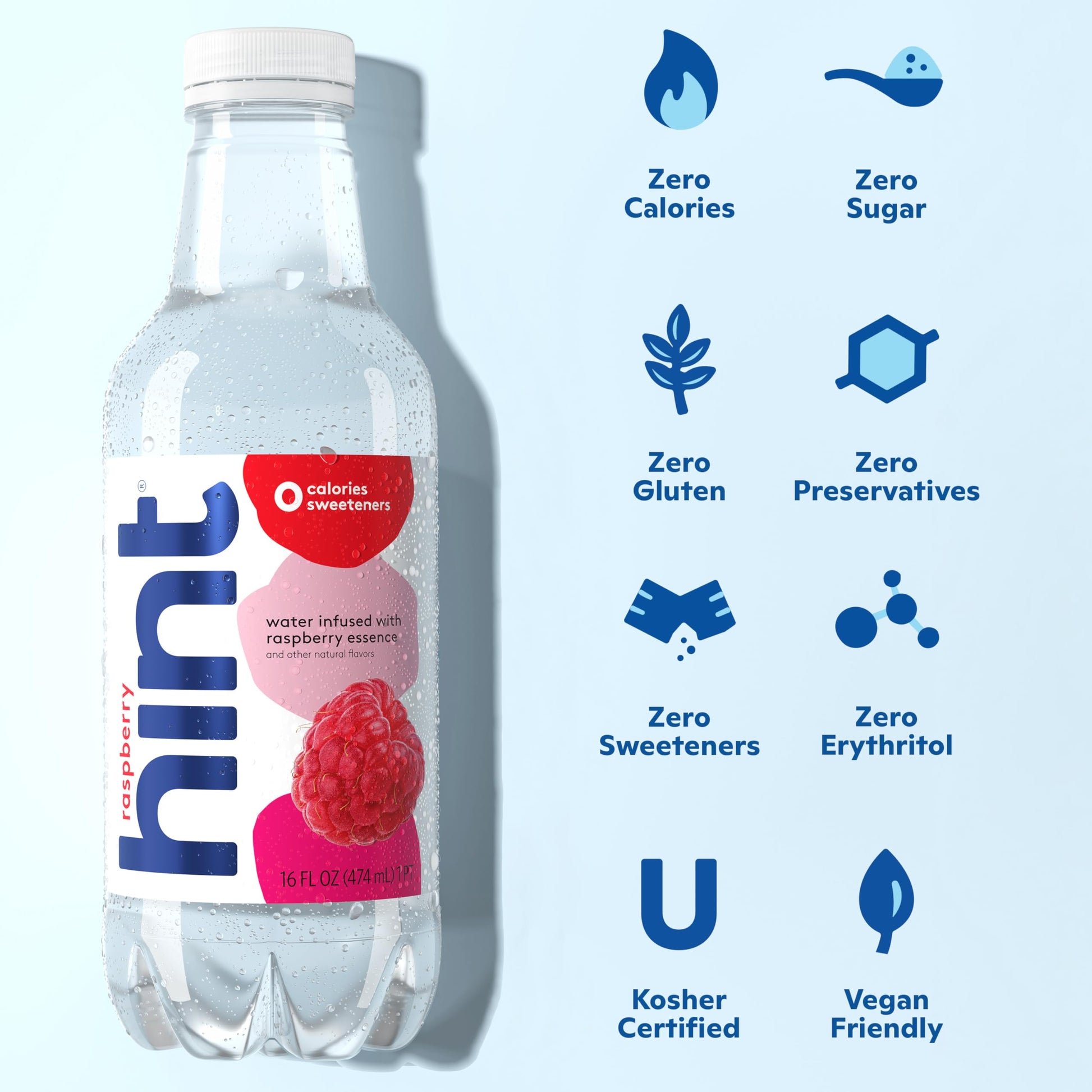 Hint Fruit-Infused Bottled Water, Raspberry - Sugar Free Flavored Water with Zero Calories, Naturally Flavored, and No Artificial Sweeteners - 16 Fl Oz (Pack of 12)