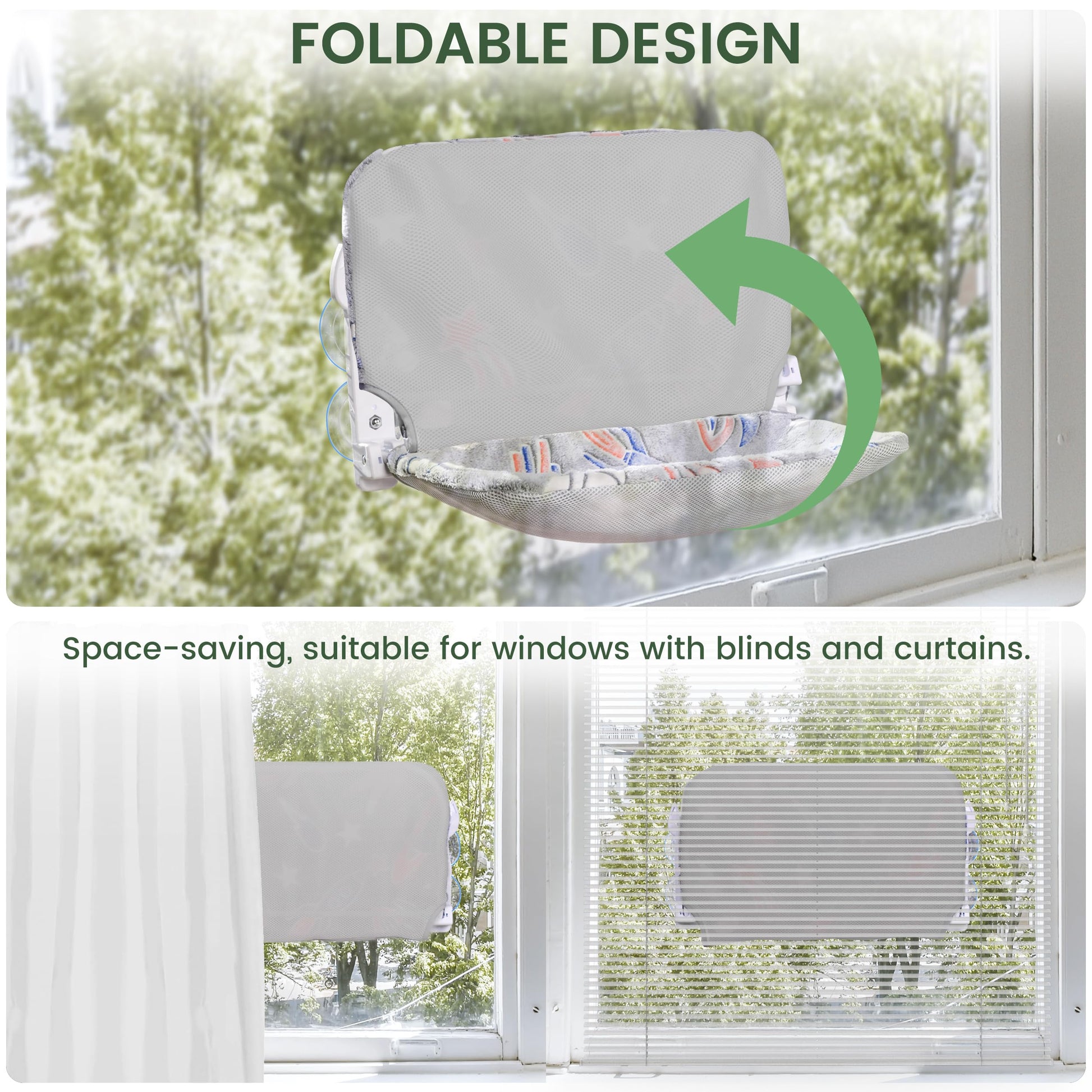 • 【Foldable Design】Cat perch window is foldable, allowing you to easily lower it for your cat to nap or enjoy the view outside. When not in use, it folds up without interfering with curtains or blinds, maximizing indoor space.