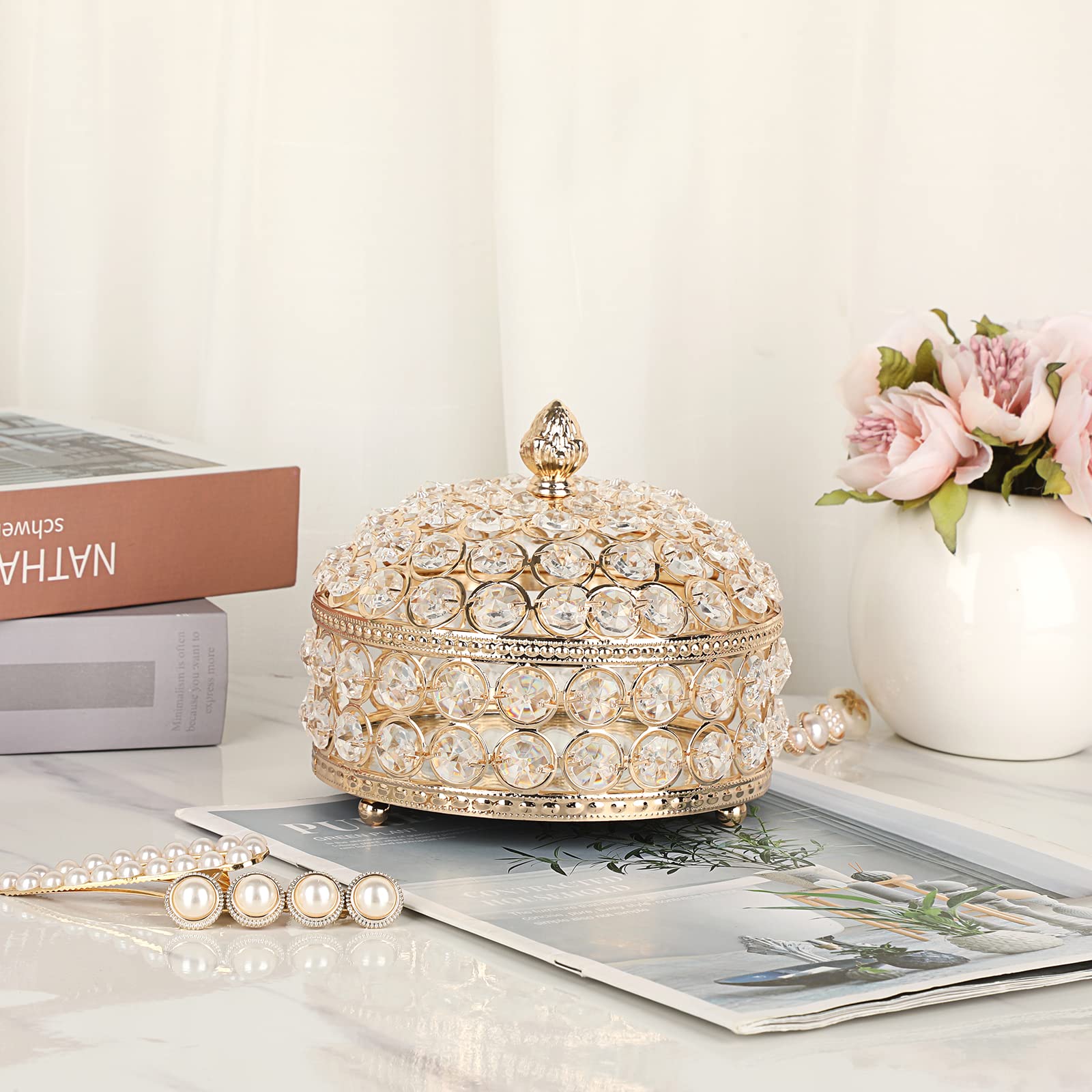 Hipiwe Crystal Jewelry Box Jewelry Trinket Organizer Box Gold Treasure Box Luxury Home Decor Ring Earrings Storage Holder Keepsake Box for Women,X-Large